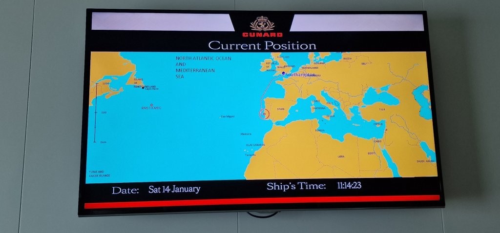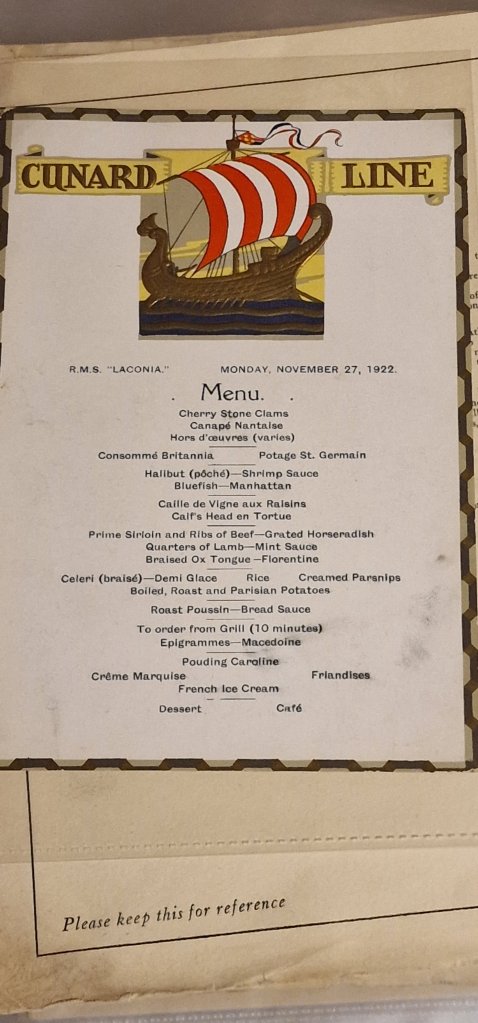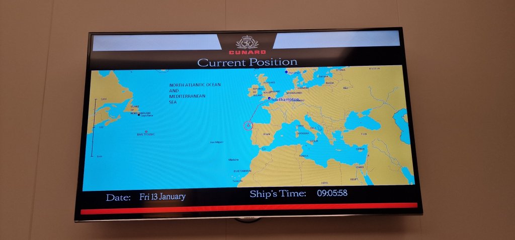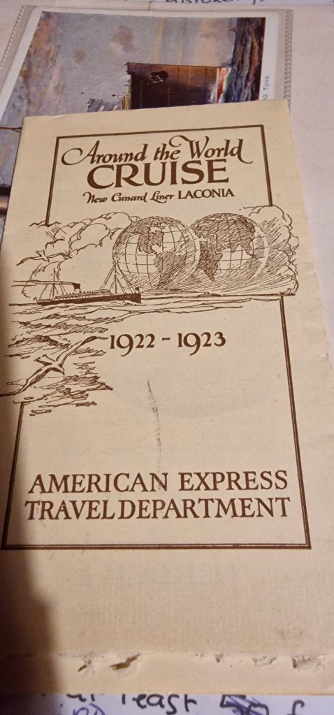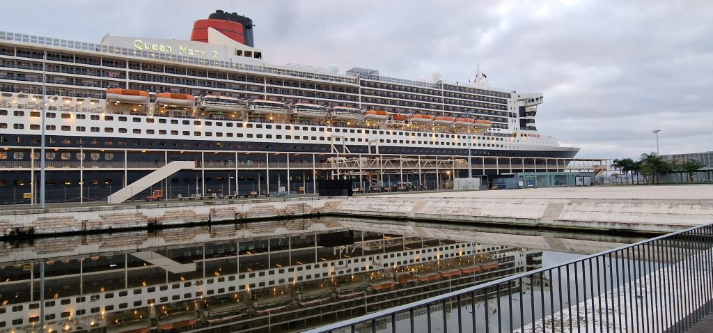 In November 1922, American Express chartered the almost new R.M.S. Laconia for the first ever round the world voyage by a passenger ship.  I have been intrigued by this event ever since attending a lecture on The First World Cruise on board QE2, probably around 2008.  To all intents and purposes, this year’s QM2 voyage is not very different to whatever was scheduled to, but did not run in 2020 and 2021.  When I booked, I was told that this voyage was sold out. Nevertheless, I managed to secure a genuine single cabin for the entire voyage.  Some cruise acquaintances have since switched from QM2 to the Queen Victoria for its traditional westbound round-the-world cruise, leaving and returning to Southampton on the same dates.   One, I know,  has switched back to Queen Mary 2!