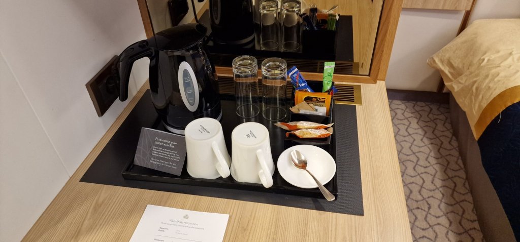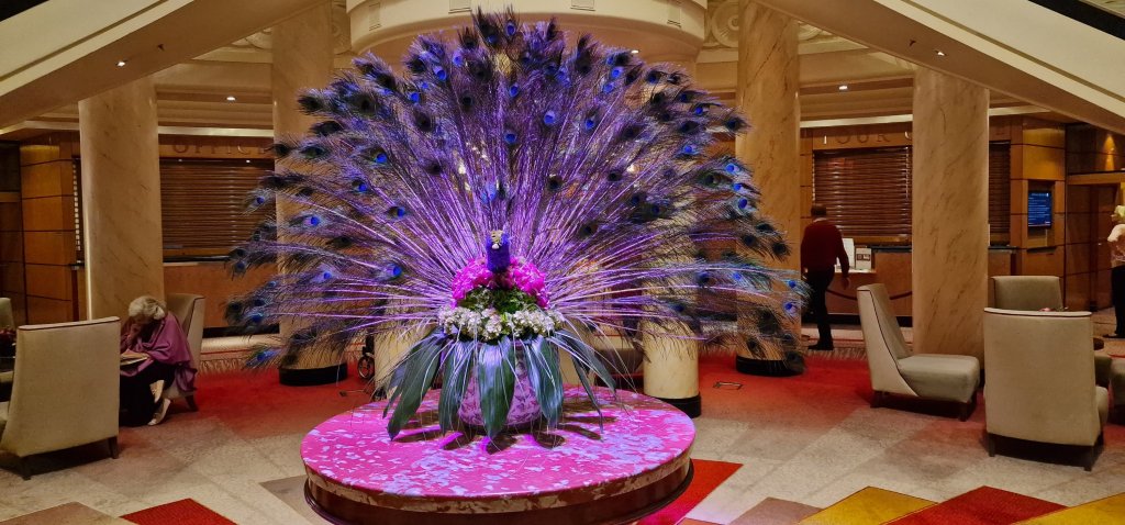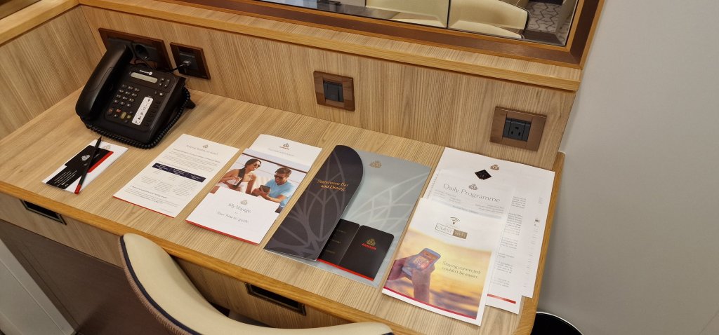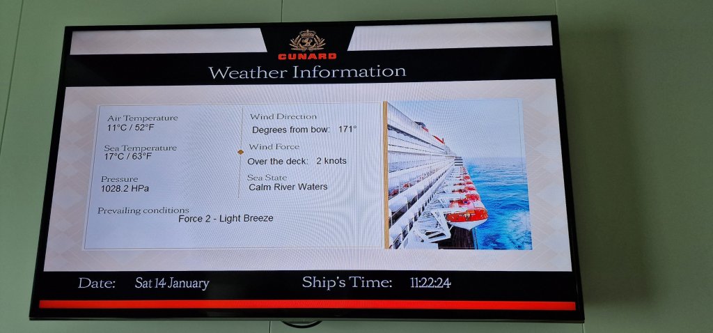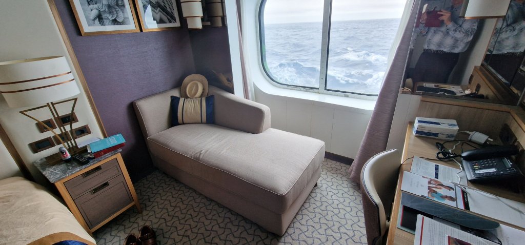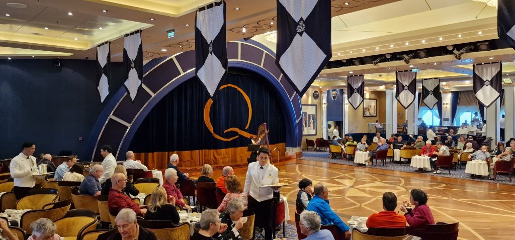 So, what are the changes and differences between now, and my voyages in 2022.  So far, there doesn’t seem to be any leaflets or paperwork covering the shore excursions/experiences.  Details are on an inconvenient website, which so far, is fairly easy to navigate.  Last night, no newspaper was delivered. I ask myself, “Is this an administrative error or a further money-saving exercise?”  The Daily Programmes are formatted differently, but do seem better laid out than in the past.  None of this really matters.  My cabin is fabulous, more like a small boutique hotel room than a typical stateroom on a ship.  Nevertheless, in rough seas, it rolls around just the same.  But it’s in the least turbulent part of the ship, midships, and low down.