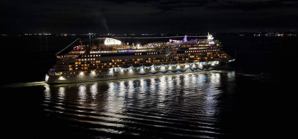 Time on board was 18.30 hrs, which is the time Aidabella slipped its moorings and was soon passing alongside.
