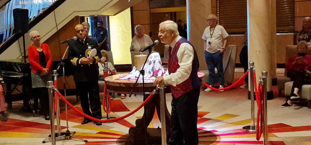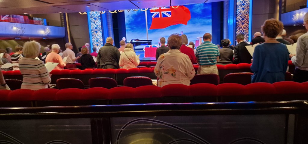 Captain Aseem Hashmi conducted a well attended service, the lesson read by Commodore Christopher Wells, with Campell Simpson at the piano. His career on board Queen Mary 2 predates the maiden voyage 19 years ago.  In my book, that is an astonishingly long career with Cunard.