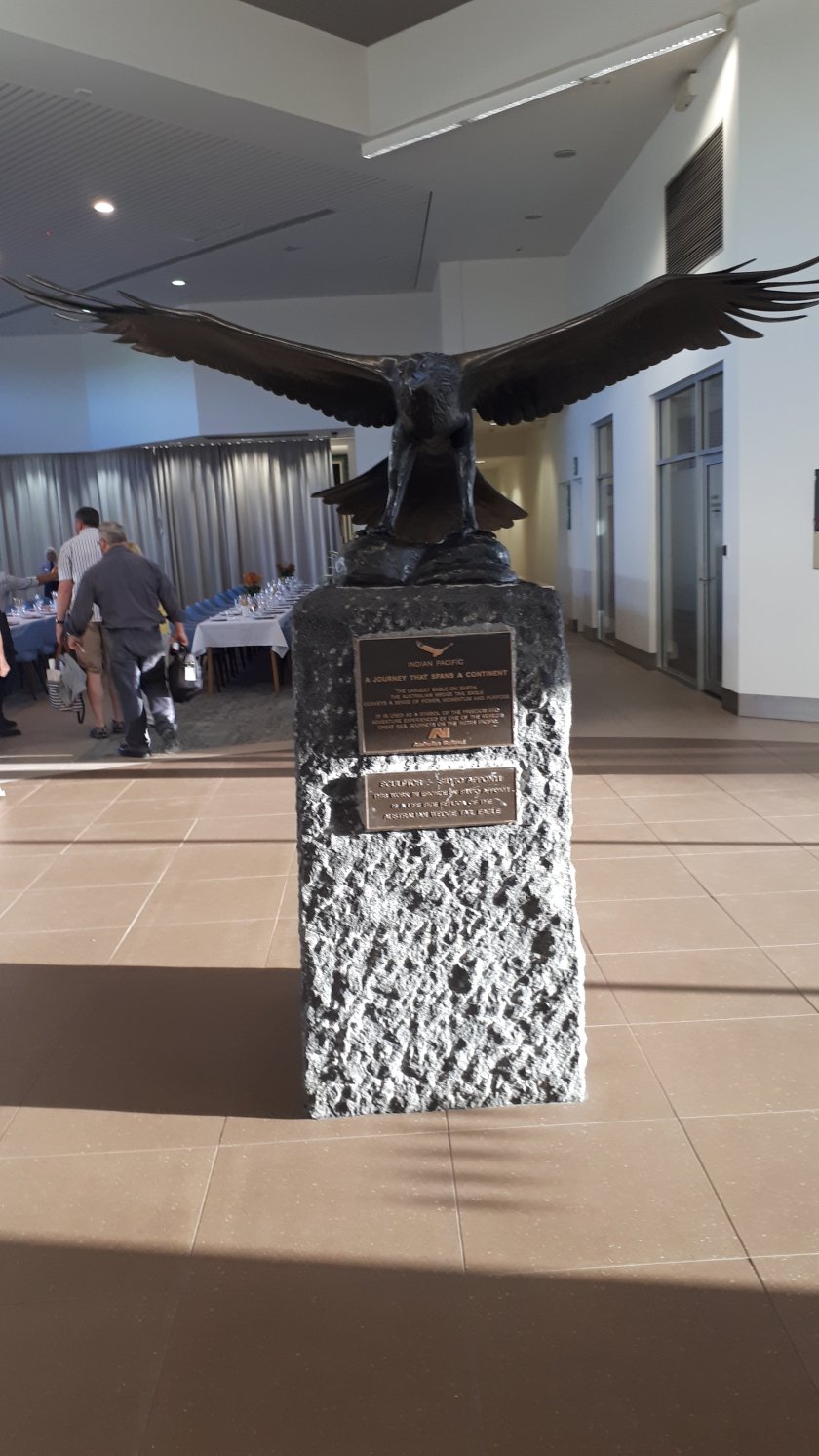 It’s now 21.15hrs. Great Southern Rail laid on a splendid dinner at Adelaide Parkland Station in impressive new premises adjoining the platform. My carry-on baggage was delivered to my cabin. This is much better; I have a double compartment to myself and there seems to be three times the space as there was in the single compartments on The Ghan. I did, however, pay a fairly hefty suppliment, which I do feel was worth the extra. The only downside I would ascertain when getting to bed, was that compartment 8 in coach “M” was directly over the bogies meaning the sensation of every bump, rail joint, and break application and other rumblings are felt much more prominently. I feared a sleepless night and requested a move. A bed was made up three coaches away in single accommodation which I was welcome to use. The next thing I knew, it was a bright sunny morning as we trundled sedately through the dry arid remaining part of South Australia. The bathroom facilities are part of the cabin but are far less spacious than those at the end of the coach. Nevertheless, this does represent a high degree of luxury in rail travel. At dinner, I sat next to Christine, a former secretary who had travelled the Indian Pacific around 15 times. There is still demand for rail travel; all the journeys I made in Australia were well filled, The Ghan full to capacity. Opposite, Norma and David on their journey of a lifetime.
