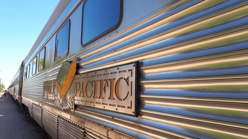 I awoke refreshed from an unexpectedly good night’s sleep, the first of two on board that most epic of trains, the Indian Pacific. At 6am, I wound up the venetian blinds only to see a heap of derailed container wagons which had “come off the road” a month previously. The Indian Pacific on that day was ahead of the incident which blocked the line for several days. I wasn’t quick enough to get pictures. The journey west through South Australia and into Western Australia was through an interesting and very arid landscape which became increasingly flat as the day progressed. People saw dingos and the very occasional kangaroo. All in our carriage saw caravans of camels on both sides of the train. But for most of the time, scrub growth and boulders punctuated the flat dry, and hot terrain. Dusty brown/orange and green are the colours which come to mind recalling trundling along the world’s longest stretch of straight railway. I noticed a board marking the boundary between South and Western Australia. We called briefly at Cook, once a thriving settlement, a support community for the railway particularly during construction and at times of maintenance. Just four people live there now, but somehow it is not as desolate as I might have expected. I enjoyed crossing the Nullarbor Plains and tried to savour every rare moment. Dinner was served off the train at Rawlinna Station, under what should have been one of those clear starry nights. Some thin cloud prevented the spectacular night sky display I was hoping for. “Orion’s Belt” was clearly visible as were other stars which weren’t obscured by cloud.