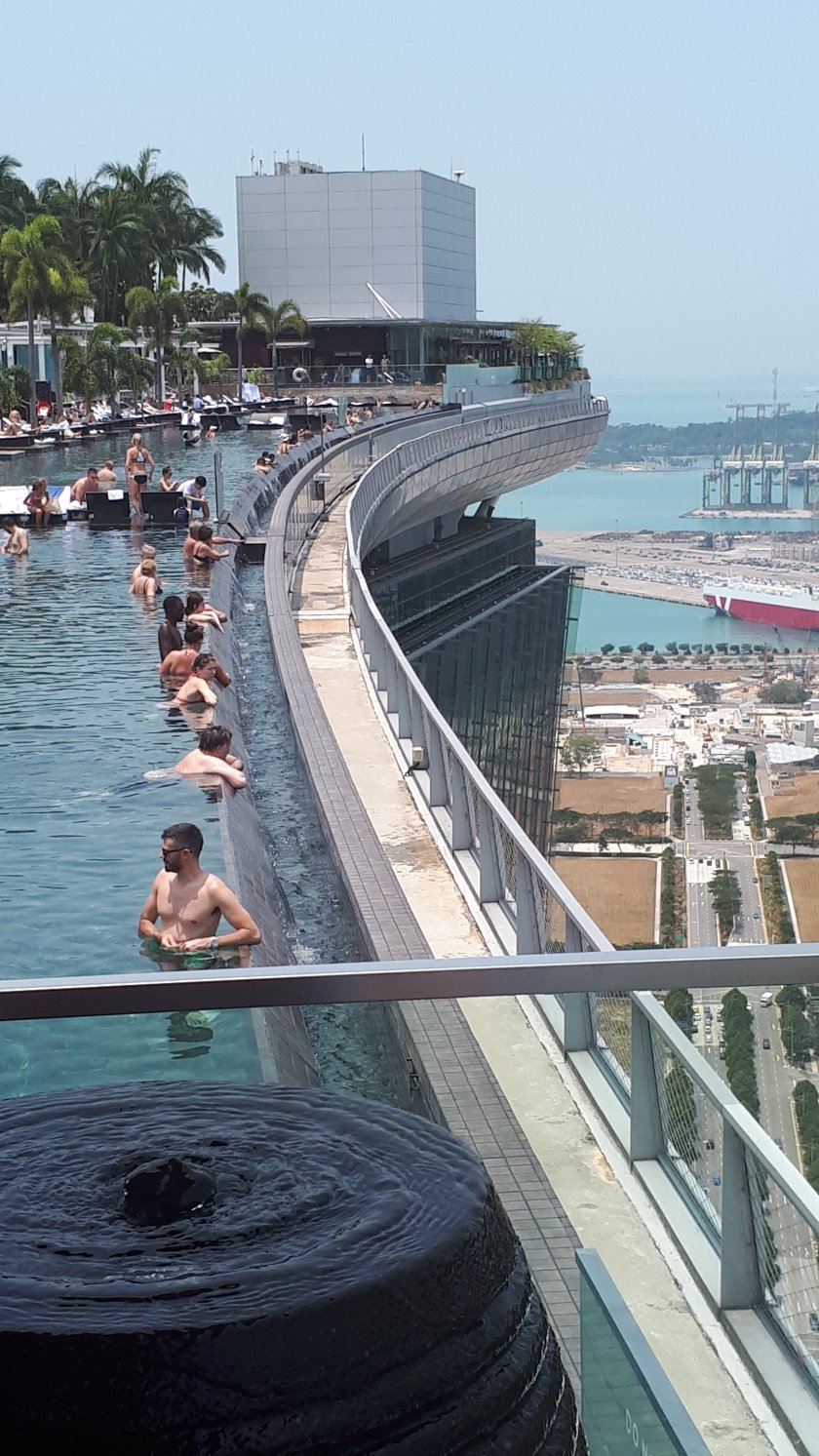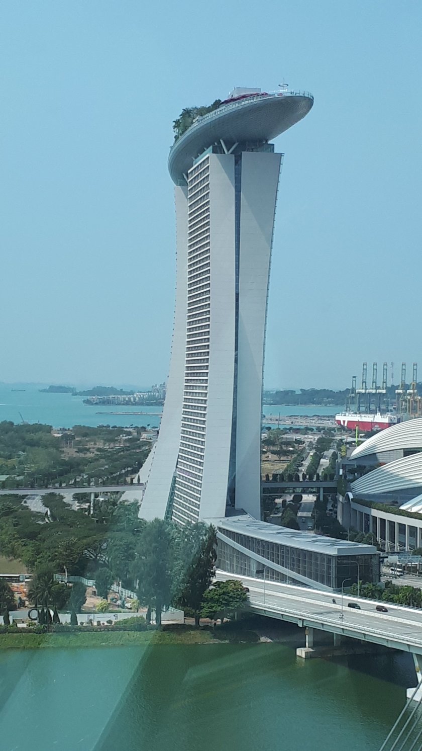 I was pleased that yesterday’s hop on hop off bus ticket was still valid. The yellow route bus ferried me very nicely to the Marina Bay Sands Hotel. I ventured inside and found it bewildering and spectacular at the same time. I merely wanted to go to the observation platform I had been to last year. Unbelievably, I was unable to purchase a ticket either by cash or card; the computers had crashed! An alternative was to buy a voucher for a bar and eatery, higher still on the 57th floor. This was a good move, as I was able to photograph much more than I was able to last year. My voucher of 22 dollars went a long way towards 42 dollars for something to eat and a soft drink (mango). I would discover that to access the area, I wanted to visit originally, I would need to return to the basement on B1; surely the computers were up and running by now. They were, and in fact, I had all the time I needed on my trip to the observation platform. Again, plenty more pictures to record my short time in Singapore. The dumpling lunch I enjoyed in the C’est La Vie bar negated the need for my much anticipated afternoon tea at The Fullerton, where I am now.