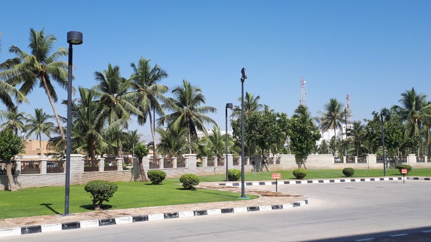 I didn’t sleep too well last night, so today, I welcome a visit to the Salalah Crowne Plaza Beach Resort where I can chill out on what might be one of the last hot days of the tour. On the way, our coach stopped at a mosque & a palace at both of which, entry was forbidden. Salalah comes accross as “a work in progress”, as the capital city exudes growth on its outskirts, and particularly in the vicinity of the docks. The centre of Salalah comes across as well established with many different types of businesses, appearing to flourish. There are areas of attractive and vividly coloured gardens. And the lamp posts are very ornate and elegant, painted in an attractive multi-coloured scheme with gold bands. A bit of civic pride here, methinks! But, it was hot, around 28 degrees Celsius.