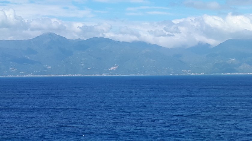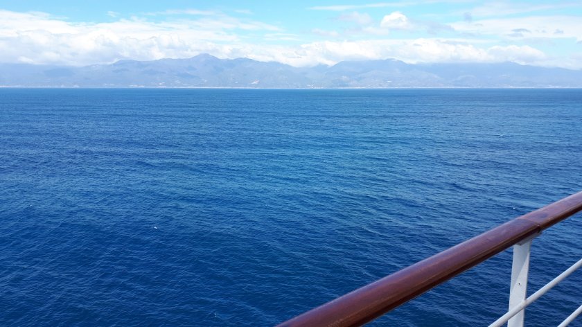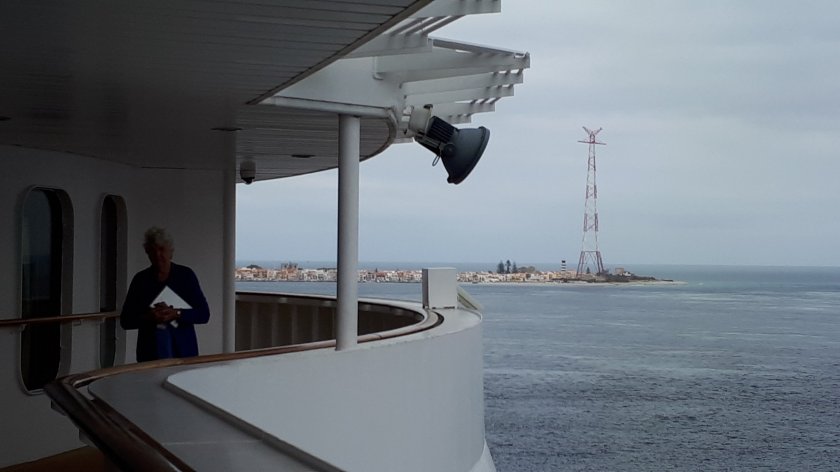(Day 65) The internet is still unreliable. When, eventually, you receive this “epistle” it may well be several days since I wrote it. Today is the second of two sea days between Cyprus and Civitavecchia, during which time, we passed through the Straits of Messina. We are currently passing Stromboli, which in 2007, during the QM2 maiden world cruise, put on a fine display of lava flows during dinner, the Captain having announced that Stromboli had erupted! Evacuation of the Britannia Restaurant to have a look was inevitable. Today, we passed during the mid afternoon daylight, and just a mere whisp of white smoke was all Stromboli was offering. This is distinctive when seen from a ship.