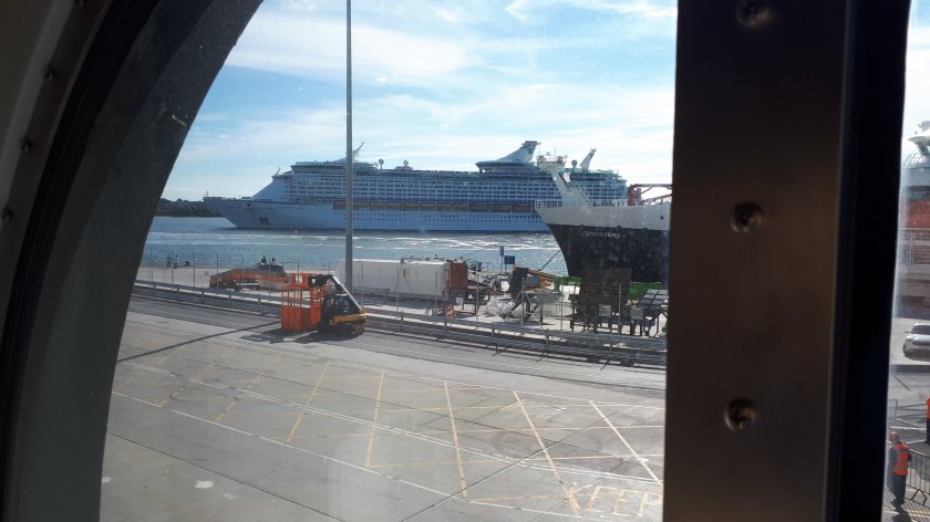 Royal Caribbean’s “Adventure of the Seas” leaves Southampton, as seen from my stateroom.