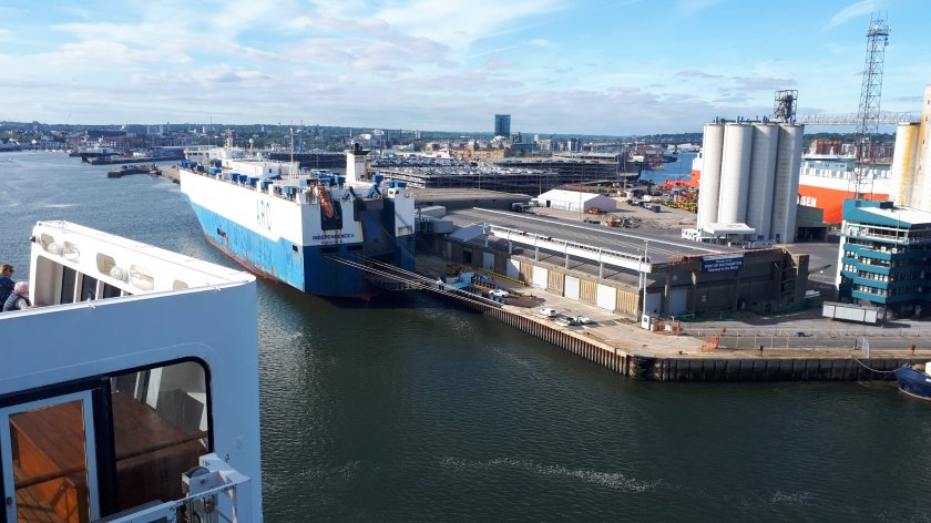 Views from QM2 as she leaves Southampton.