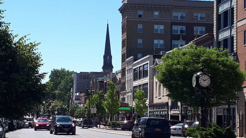 Schenectady has a brand new “Train station” (a term I have yet to accept!) The traditional style architecture is very easy on the eye, both outside and in. And downtown Schenectady is most pleasant and largely new. But my taxi driver warns me not to stray two blocks from the Main Street. And the guy in the Tickets and Baggage Check-In warns me not to stray too far from the station. Timidly, I wander only to the near vicinity for some photographs, and return with oodles of time, only to ascertain that the north bound Maple Leaf is running around 45 minutes late.