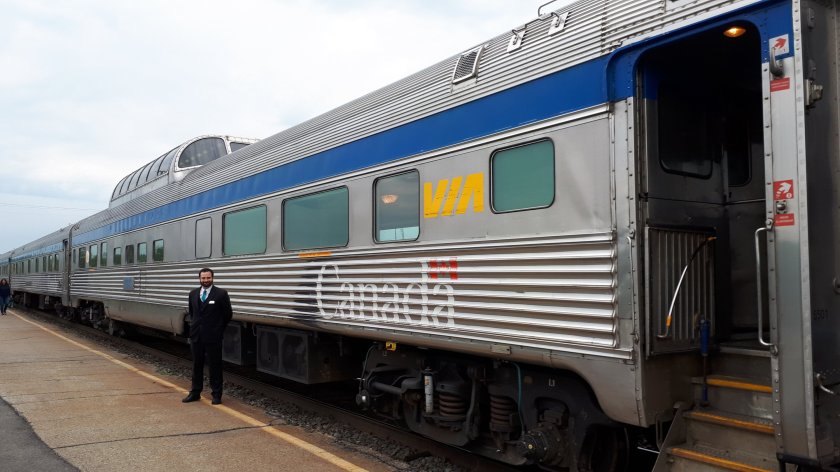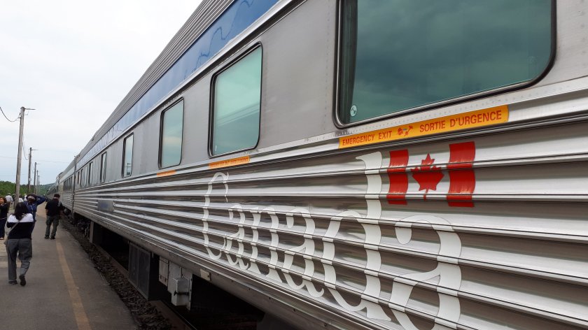 Well, I did manage to check in at 7.50, grabbed something to eat, and then be escorted with the other travellers onto the train. Looking along the platform at “coaches of stainless steel and chrome” prompted memories of recent very long distance travels in the Antipodes, and 50 years ago, boarding the Denver Zephyr in Chicago, for a full overnight journey.I was shown to my cabin for the next three nights. It was the largest available apart from those in Prestige Class at the rear of the train. The Canadian was supposed to depart the previous evening at 10.00pm.