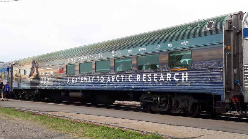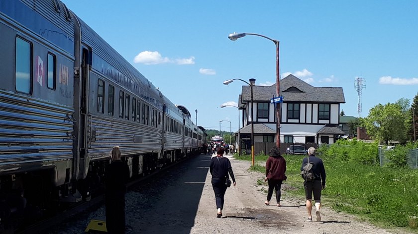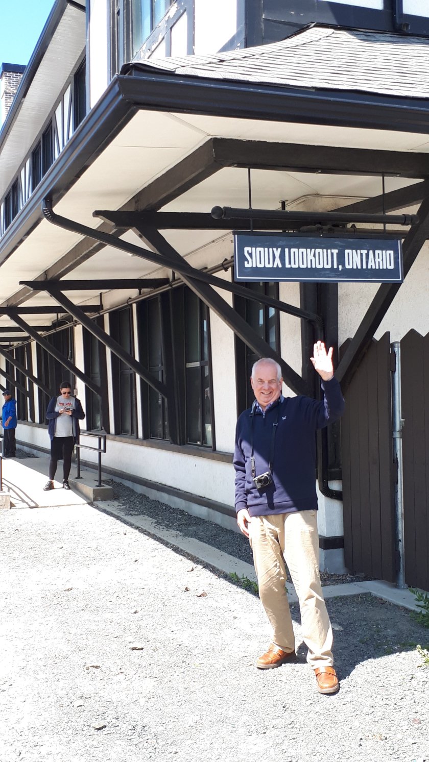 The last picture (above), I consider a “lucky” shot as the Toronto bound Canadian, VIA No.2 passes. (13/6/19).Very early this morning, it was foggy and wet. The mist cleared by the time I was finally getting up. Oatmeal was on the menu for breakfast, which I enjoyed with fresh fruit cocktail and coffee. Around lunchtime, we were allowed off the train at Sioux Lookout (pop. 5,037) while the locomotives were serviced.