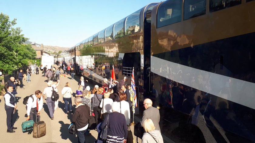 Boarding the Rocky Mountaineer at Kamloops, 17th June. We departed on time at 08.00hrs