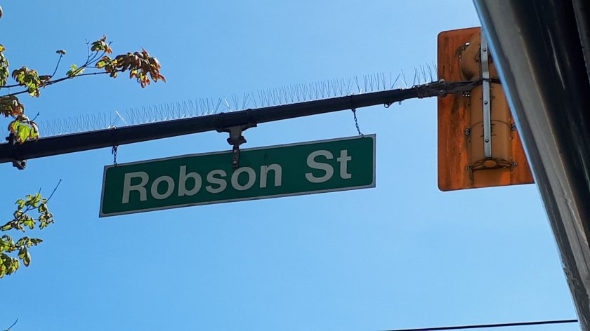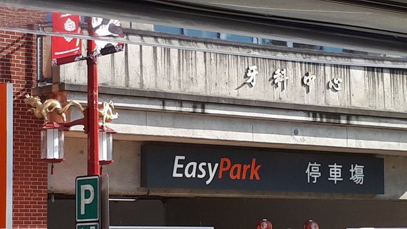 Chinatown, Vancouver. Streets here are identified by a gold dragon on the streetlights.