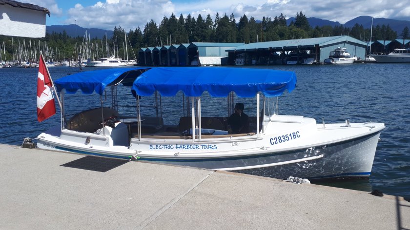 Today, (and I have only just thought about it) is the last day I am travelling “independently” i.e. making my own way and staying in hotels chosen extremely well by my travel agent, and finding my way about on trains and other public transport. Tonight at the Hyatt Regency is by way of a “grand finale.” For tomorrow, I embark Cunard’s Queen Elizabeth for the seven week voyage home. This morning, I availed myself of the hop-on/off bus as far as Coal Harbour for a half hour “harbour cruise.” This was part of the hop-on/off deal I signed up to yesterday. The boat ride on a battery powered vessel was most enjoyable, the “captain” entertaining and informative, describing everything from wildlife, pointing out landmarks and architectural facts. There were just seven guests on this boat trip. A cool wind caused me to wish that I had put on more clothing.
