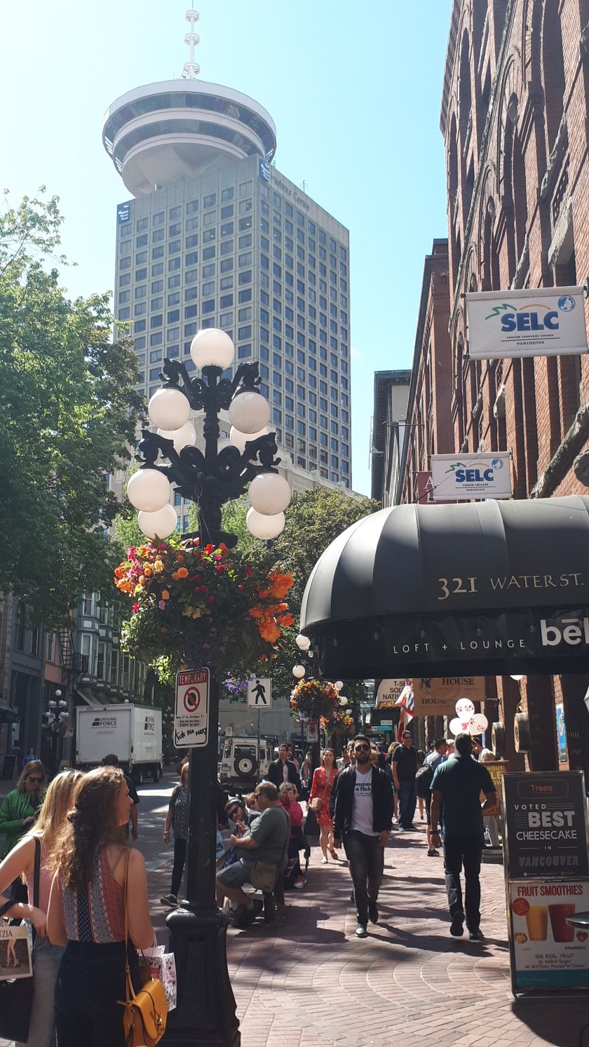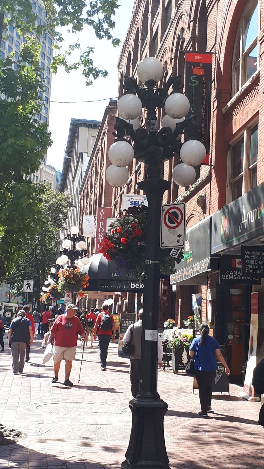 Gastown : Steam Clock, Decorated lamp standard, Vancouver Lookout. (above)