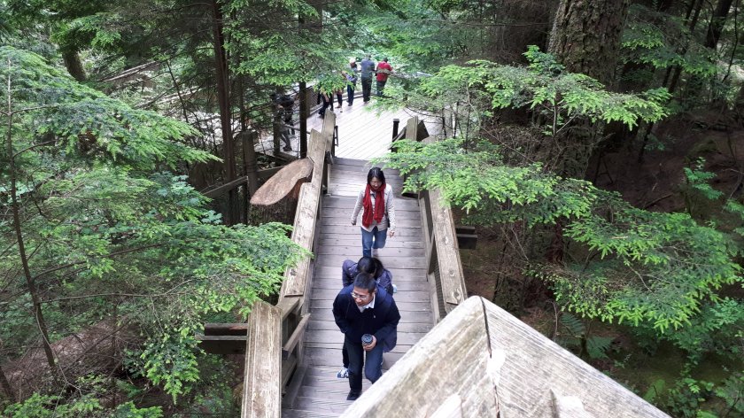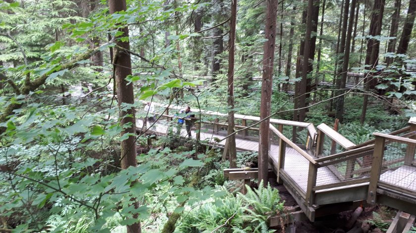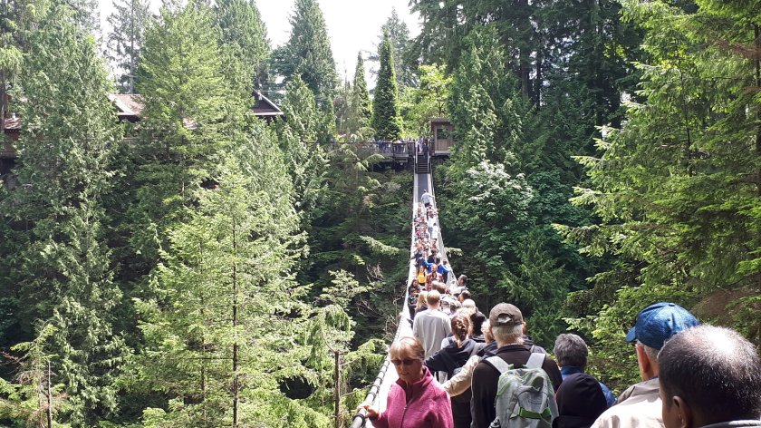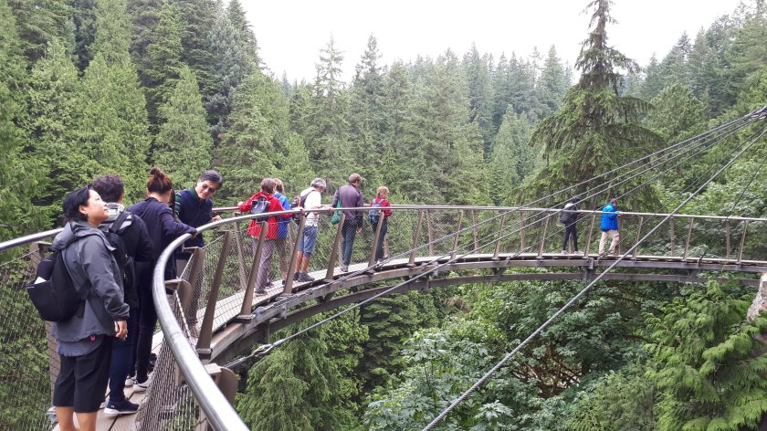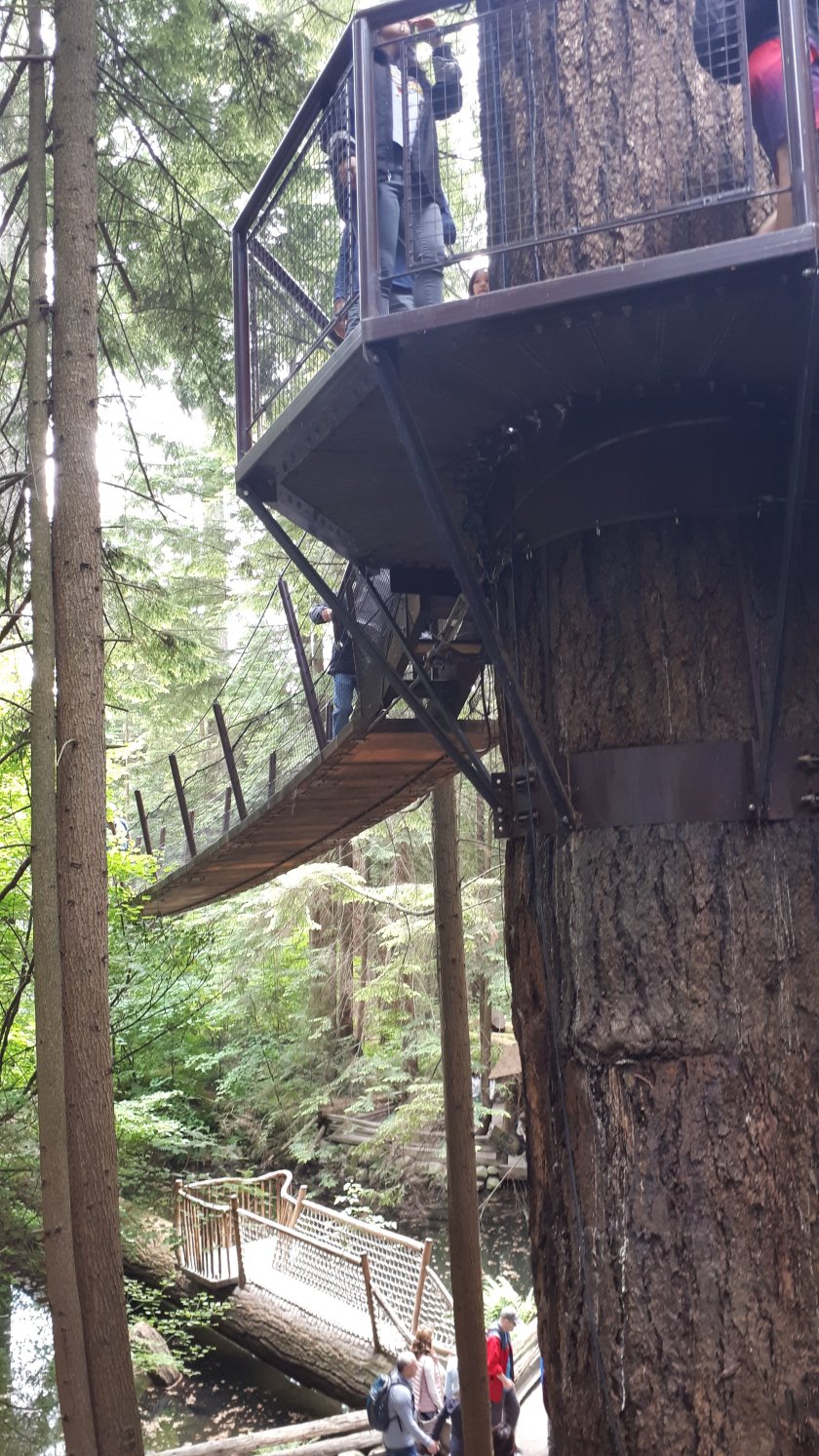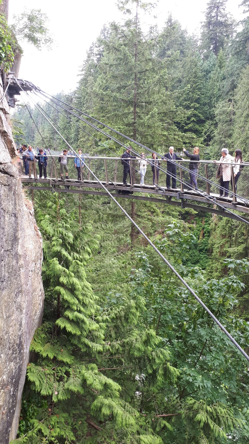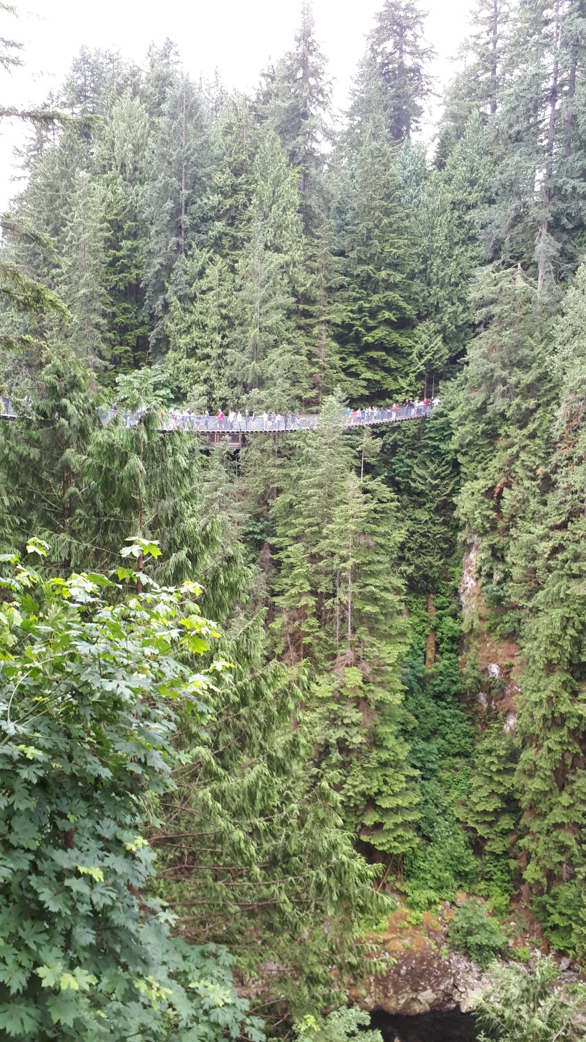I hope that I am not cutting it fine. But, I wanted to make the most of my last few hours before I am due to board the Queen Elizabeth. I was intrigued by the Capilano Suspension Bridge, and wanted to make my own way there and go around in my own time. This is a very well organised tourist attraction where at least three “trails” are on offer, affording magnificent elevated views of forest, gorges and cliffs. I felt the 51 Canadian Dollar fee good value for what was provided. The “piece de resistance” has to be the very wobbly suspension bridge. Thankfully, I enjoy a good head for heights. I believe I walked along every route available, along with hordes of tourists from all corners of the earth. Below are some of the pictures, hopefully in the order I took them. A few have failed to upload; but there should be enough here to give a general idea, and not in the order I would have liked!