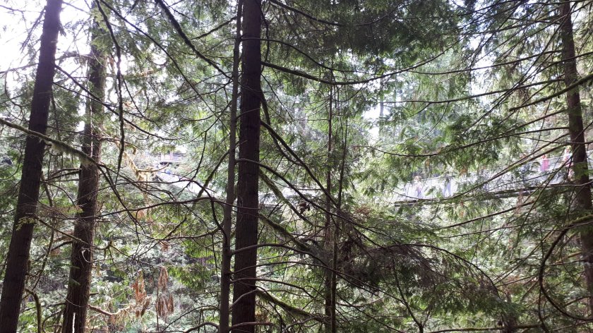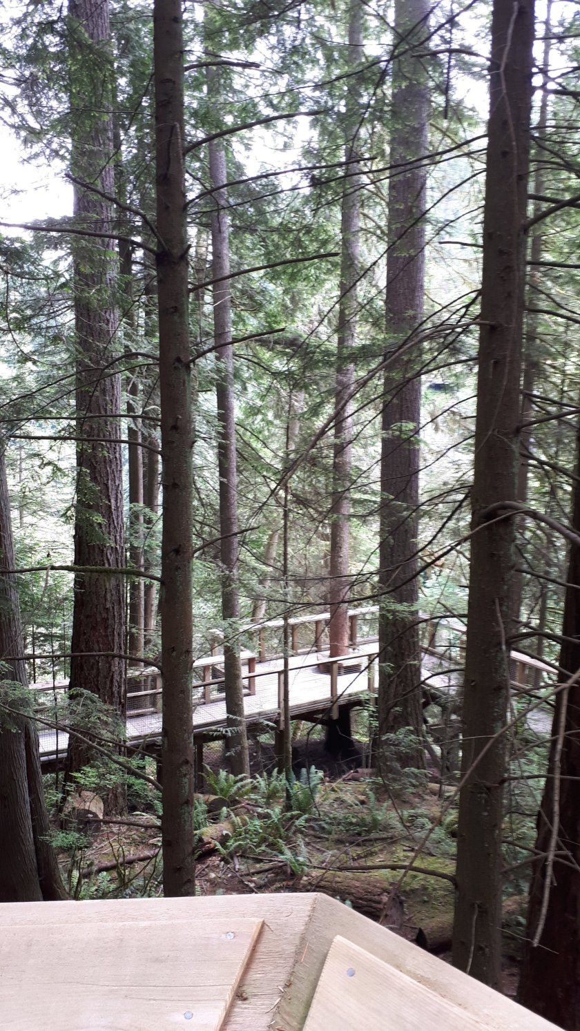 (above) My first exploration was along the Cliff Walk from which these five images were taken.I then crossed the very wobbly Capilano Suspension Bridge. I think any pictures taken were on my main camera. We continue to The Tree Tops Adventure, where the walkway is high up in the tall trees of the forest.