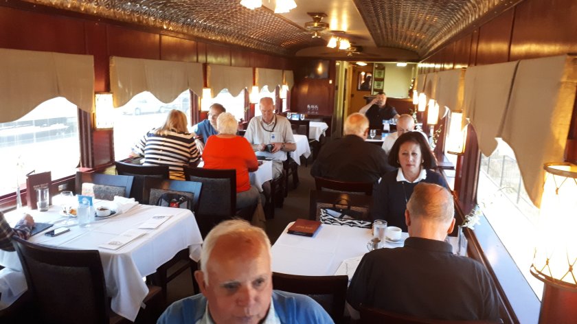 I didn’t make a point of watching as we sailed under the Golden Gate Bridge at around 04.45hrs. We would dock at San Francisco at around 7am, by which time, I would be preparing for my day out on the Napa Valley Wine Train. Any shore excursion with trains as a main element of the tour will always attract my attention. And I was not disappointed. The commentary from our tour guide was informative and delivered in a pleasing way. Soon, we were left to enjoy the passing wine fields draped countryside, just having important landmarks brought to our attention. The train was fascinating. Vintage one hundred year old clerestory passenger stock was marshalled with carriages from more recent eras. High end cuisine and wine was served throughout the three hour experience over a round trip of 30 miles, including the locomotive changing ends.