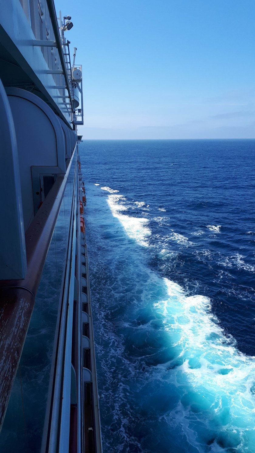 Optimistically, I donned shorts for the first time on this holiday, anticipating warm weather in which to sun-bathe. It’s unlikely to be “a scorcher” today. During a sea day, I shall tour the ship to take photographs of “scenes on board”.