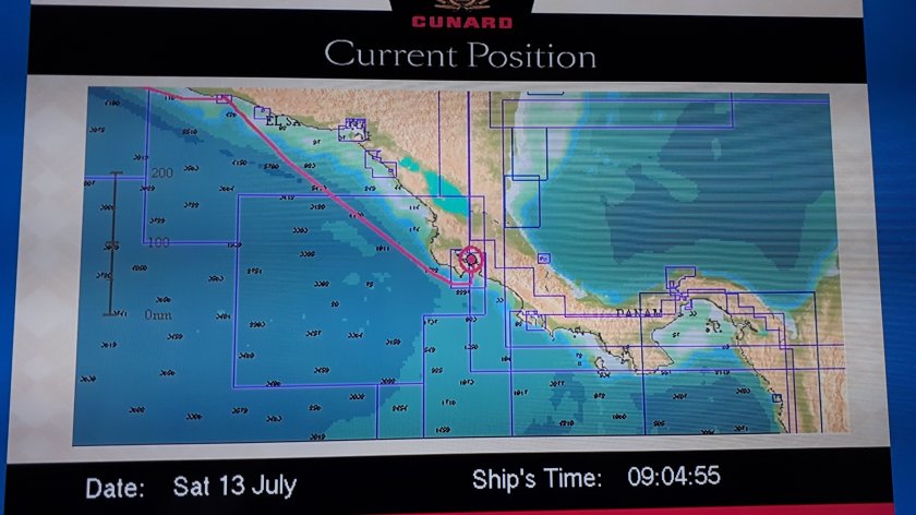 Yet another tranquil and restful day “doing very little.” I did see a few dolphins during breakfast in the Lido. I think I needed to relax after a long but very interesting coach and boat trip in Guatemala. The disaster I described earlier was, in fact, a volcanic eruption with major tragic consequences. I am not sure, yet when this occurred, but I believe fairly recently.