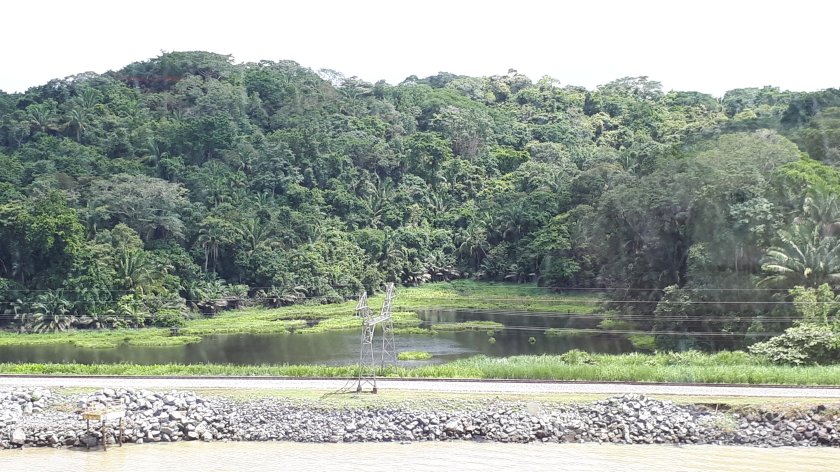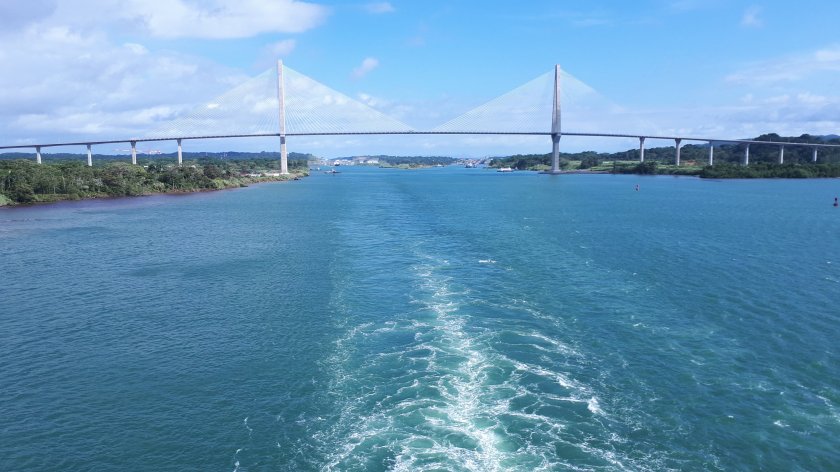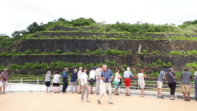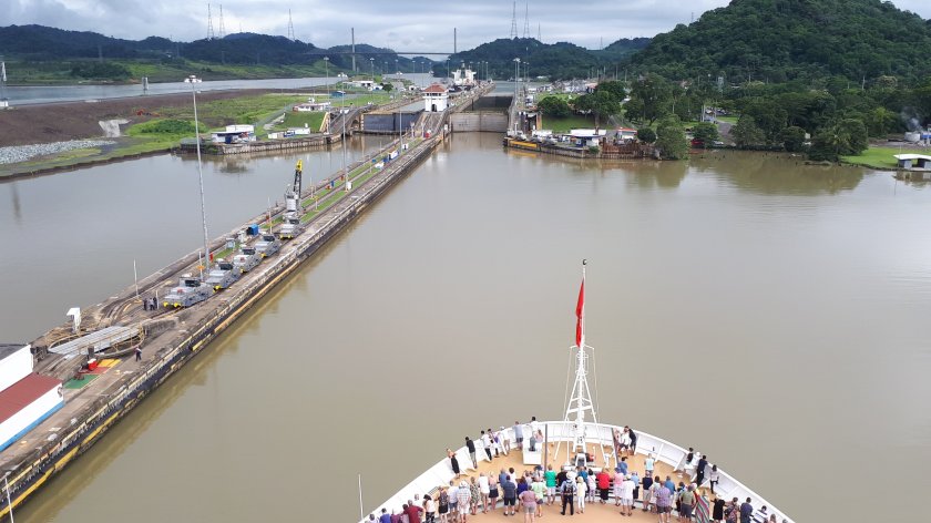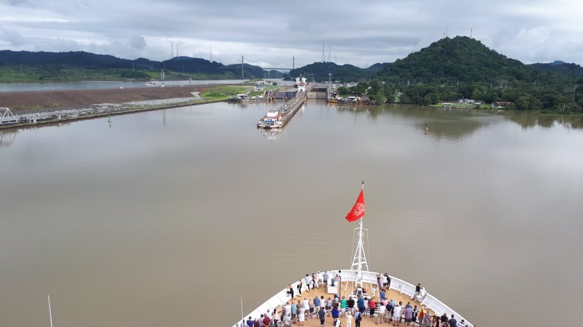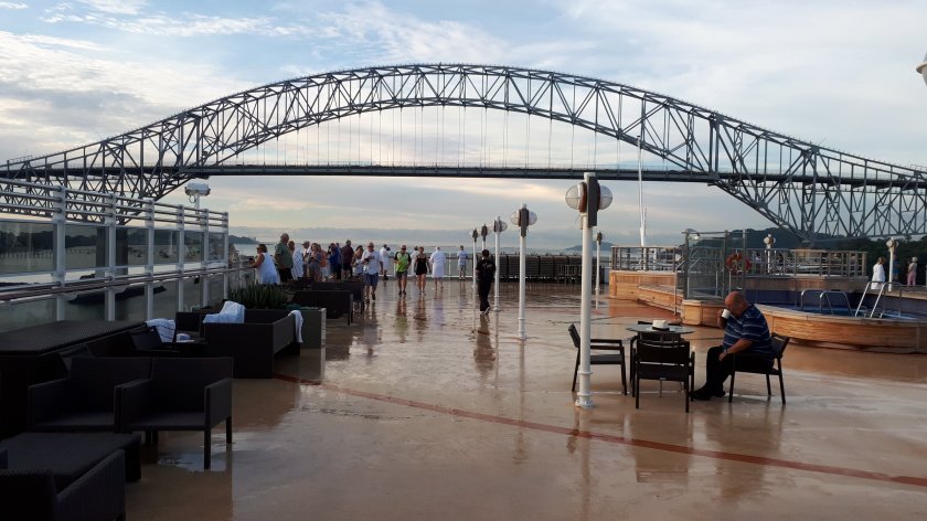 I was not quite sure what to expect today, and unlike a great many on board, I did not set my alarm for the early hours. I never do! Nevertheless, I was awake, and my curiosity aroused, knowing that by now (6.30am) the transit of the Panama Canal would just be underway. Channel 41 confirmed that I had a few minutes in which to shower and be ready for going under the Bridge of the Americas. I just made it! For interest and picturesque landscapes, transitting the Panama Canal is my first choice over The Suez Canal which, too, has much to offer.