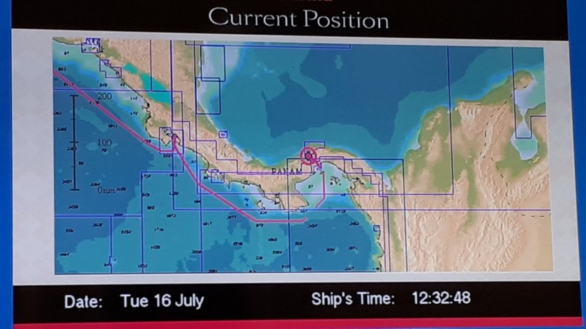 I watched in amazement as Queen Elizabeth was guided through what is regarded as a Wonder of the Modern World. Lives were sacrificed in its construction. The scale, imagination, determination and “biblical” engineering will, forever, be beyond my comprehension. Like the Channel Tunnel, the notion to construct a route to negate the otherwise in this case, necessary circumnavigation of almost all of South America had been contemplated for some centuries, and it’s worth perhaps Googling some more facts. Our transit seemed to go to plan, although it was well after 4pm that eventually, we would be entering a slightly bumpy Caribbean Sea.