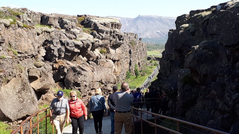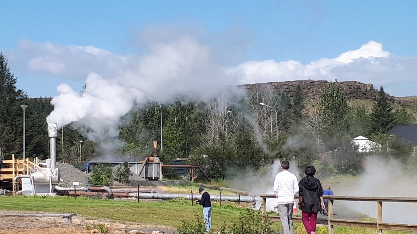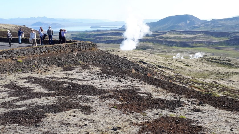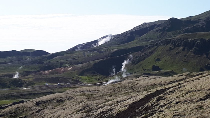 I settled, comfortably, into the remaining window seat on the coach and after a minor technical issue, we were soon under way. The flat and uninspiring sprawl of the outskirts of Reykjavik, including where the port is, soon morphed into increasingly undulating and rocky landscape where thousands of trees were planted as an experiment which didn’t quite “come off.” While they still thrive, they take very much longer to grow tall, if they ever do. The tour circled the base of the still active Hengill Volcano which the tour guide hinted ( tounge-in-cheek) was due to erupt anytime, as the previous eruption was 2,000 years ago. The tour would take us to (eventually) the Hellisheidi Geo-thermal plant, Thingvellir National Park and we would pass the massive natural Lake Thingvallavatn, as well as visiting places to witness the spectacular hot springs which were plentiful, bringing to mind Rotoura in New Zealand. Our tour guide was very keen to impart as much local and relevant knowledge as she was able. As ever, I found this overwhelming and a little tiresome, but I am sure I was the only guest who felt burdened by so much back to back information. It was, nevertheless, a superb trip and I am happy to share a few images below.