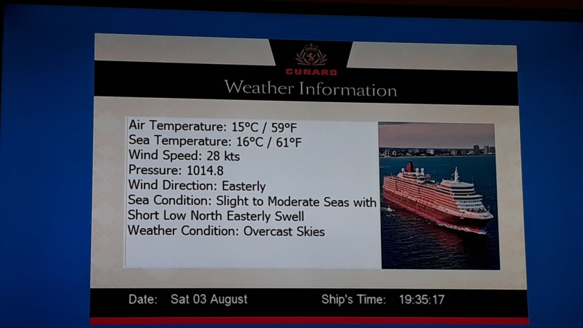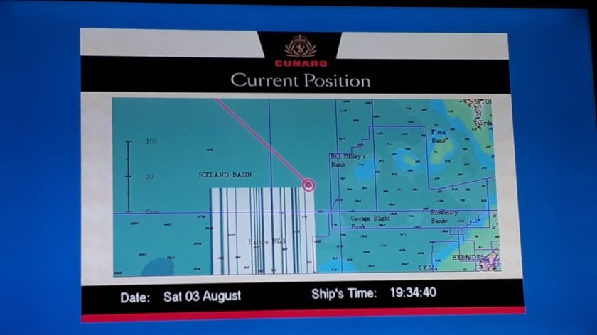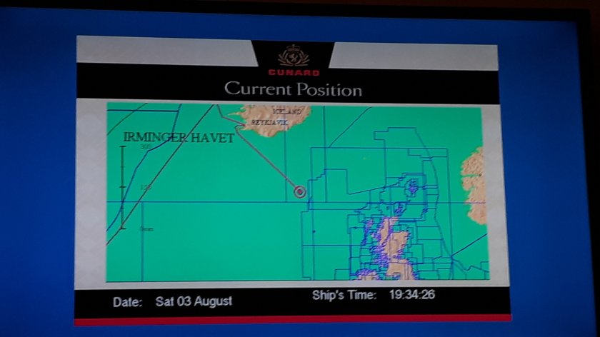 Today was one of little activity. I attended a “Senior Officers’ Party” in the Queens Room. The glass of champagne contributed to my feeling very drowsy for most of the rest of the day. The last dregs of my cold are reluctant to disappear.
