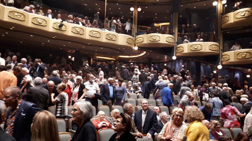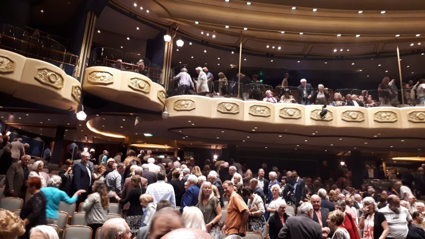 Tonight, after dinner in the Britannia Restaurant, Denise, Glenis and I attended the Crew Show, in aid of Help for Heroes. This was full and standing and was received throughout with all-round enthusiasm from the audience.