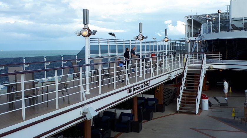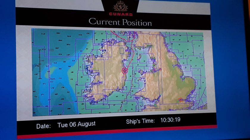 Dublin’s fair city was rather more moist than Greenock, yesterday. But, nevertheless, there were long periods when the heavens didn’t open, and the “Departure from Dublin” at 18.00 hrs was one such welcome period, but not dry enough for the final sail-away party to be on the open deck, as on all other previous occasions.