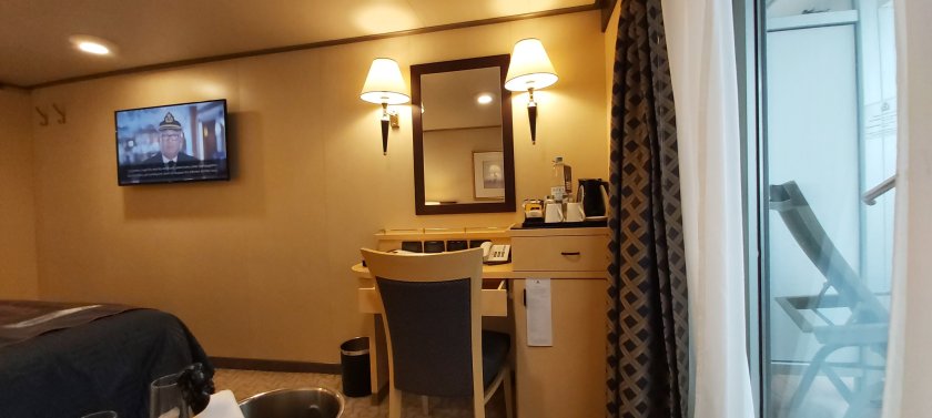 By now, my luggage had been delivered, and again, previous experience enabled me to unpack in a most organized manner. My cabin is meant for two, and I would suggest only just adequate, albeit there is a nice balcony on which to relax and breathe real air, rather than that offered by the ship’s air conditioning.