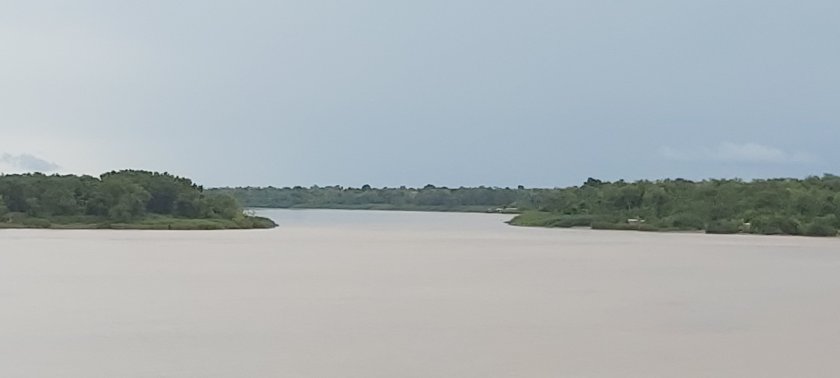 The river banks are clearly discernible on the starboard side, less so opposite. In fact, at the moment (11.45 hrs) I cannot see land to port.