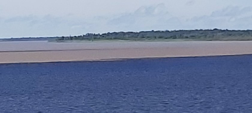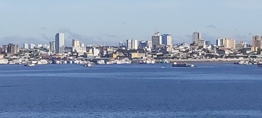 Leaving Manaus: note in the last two pictures, Rio Negro (clear blue/black) alongside the Rio Solimoes converge to flow side by side before reaching the “birth of the mighty Amazon.” The current is behind us now and we are thus exiting quicker downstream rather than battling in the opposite direction.