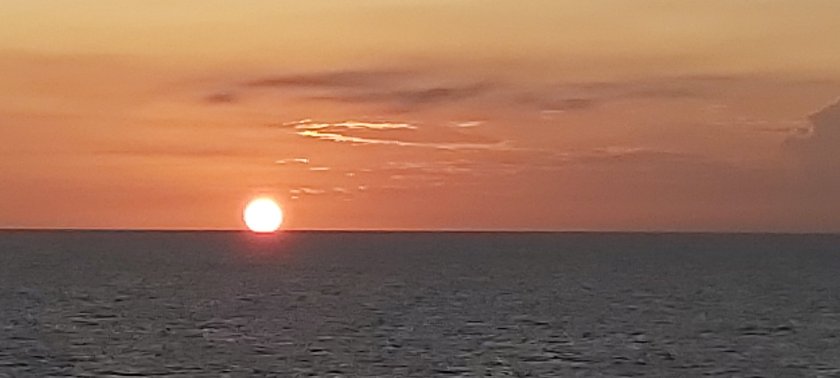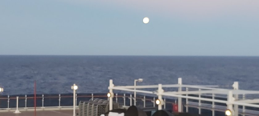 After all that, I chilled out on Deck 10 aft as the sun, unobscured by cloud disappeared over the horizon. Was that really a green flash I perceived as the sun dropped out of sight? If so, it wasn’t spectacular and nobody else saw it!