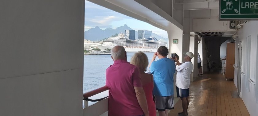 That morning saw me prising myself out of bed just after 6 o’clock. The sun came streaming through the gaps in my curtains. Curiosity got the better of me, and a quick peek from my balcony found me gazing across at bits of spectacularly rocky landscape. “Were we here already?” I queried to myself. “This is the approach to Rio de Janeiro…..you are not coming this way again, get up now!” I ordered myself sharply. Thus, I experienced one of the finest approaches by ship to a great city; others include New York, Cape Town, Liverpool and Sydney.