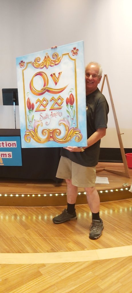 Four pieces of luggage had been taken ashore during the night, for collection and transfer to the coach I had booked a seat on a few days earlier. I struggled, from my stateroom, with a further three bags and the painting I had at that particular time, wished I had let somebody else win at the auction! On that last morning, I bade Jo farewells in the Lido, and at the luggage collection point where she appeared unexpectedly, one final time. I got to see one or two others also. I think Christina was the very last person I said goodbye to at Knutsford Services, but by that time, I was obliged to keep two metres away from her or anybody. That’s “social distancing” for you!
