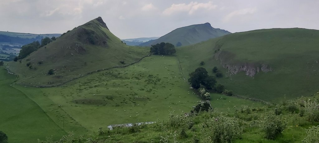 The hot weather this week has been magnificent. Yesterday, I did very little; I didn’t feel it wise to go walking alone in this glorious but very hot weather. Thunderstorms were promised for today, the day arranged for a walk to a scenic “somewhere new”. As the crow flies, where we ventured to is slightly over two miles from where I live. A great pity then that that the spectacular peaks of Park House Hill and Chrome hill cannot be reached by direct footpaths. It never occurred to me that in fact, the Staffordshire border could be similarly close.