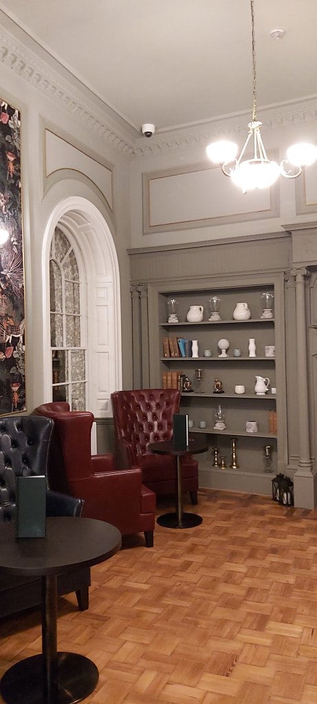 However, here I am, seated comfortably for a second time in a restaurant “straight from London’s West End”. My room, 204, is probably three times the size of the more than adequate Classic room 110 that I was most impressed with last week. Once again, I am alone, my friend from Buxton Festival who is also staying here unfortunately feeling unwell, and thus unable to join me for dinner. For a second time, I chose leek and potato soup for a starter, and was just as delicious as last week, and piping hot. I have chosen a beef dish for my main, and tonight, final course. I rather think the fabulous berry trifle last week may have triggered diabetic symptoms. I have felt incredibly tired over the last few days. Lee and I took a tour of the spa, pool and gym facilities which I had seen last week, after having partaken of a sandwich and leaf tea in the Bar.