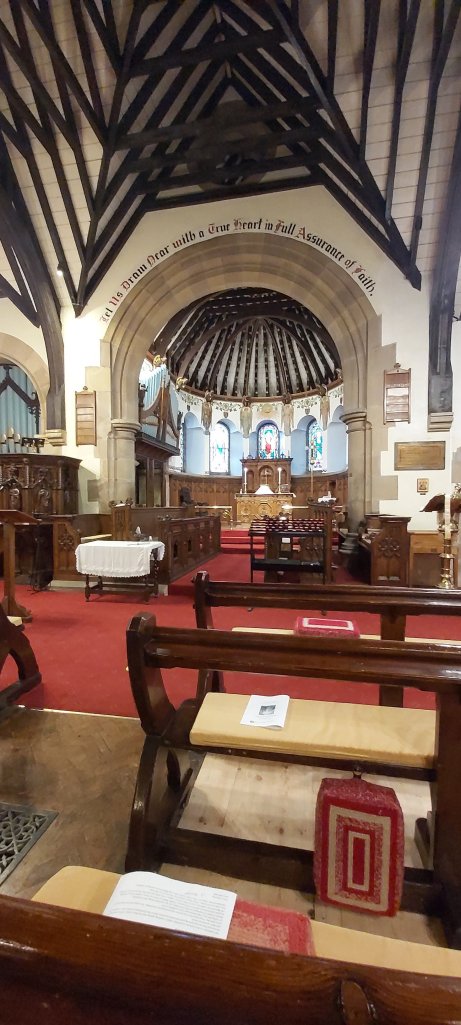 At St. John’s, the Bishop suggested that this service should be regarded as “the first, last and only” Eucharist you would ever attend, and that when coming to take Communion, you should (in your mind) bring someone of personal significance to the Lord’s Table. This was much more meaningful actually in church than I am able to describe here. The choir, which numbered more than the allowed maximum of six, were put through their paces, and the service was full of wonderful music. The order-of-service booklet attributed the Gloria and Sanctus to Victoria, with whom I am unfamiliar, but which my humble research points to Tomas Luis de Victoria c1548 – 1611. The choir also sang two lots of two verses of the hymn “For all the Saints” at the opening and towards the end of the service. So, this turned out to be rather a special event prior to lockdown.