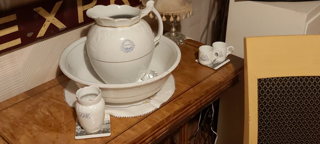 I became interested in “badged” china ware and pottery after coming across (by accident) a jug and bowl set from The Peak Hydropathic, a hotel which closed in the early 1920s eventually housing the Buxton Museum in one part, The Law Courts and the British Legion Club in the rest of the building. From what I gather, it was never really successful as an hotel, and was sold by auction in 1915. I have a number of copies of the auction catalogue, in various states of condition, detailing every part of the hotel. Thus, coming across what was left of the Buxton Mothers’ Union crockery and badged teaspoons was, for me, something of a find.