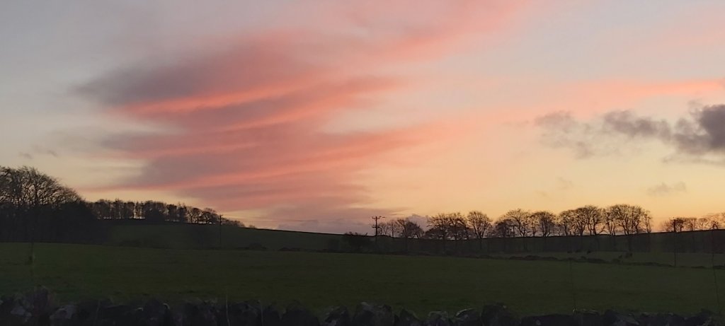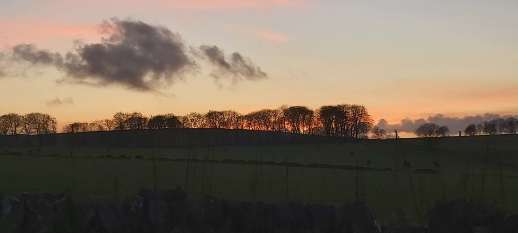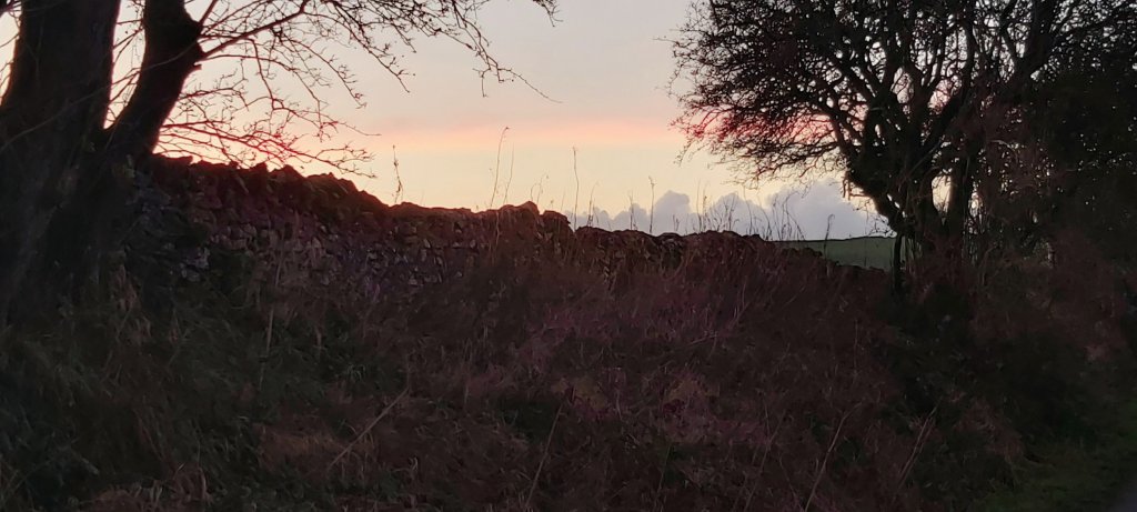 Today, Wednesday, Roger came over for coffee. I had continued with the endless job of sorting out ephemera for eventual cataloging. I later called on my next-door neighbour who was working on a car. We had not “caught up” for quite some time. He enquired if I had kept up with the walking. I confessed that yes, I was still going for walks, but not as much now that it had become colder. But, today wasn’t as cold, nor was it windy. Thus, on impulse, I drove to Parsley Hay, intending only to walk for around half an hour, along the High Peak Trail. I had over- slept magnificently this morning and felt rejuvenated. I walked along the old railway line to beyond Friden Brick Works, which I don’t think I have seen since the 1980s. I have walked as far as Newhaven Tunnel on numerous occasions more recently, usually from Hurdlow. To begin with, there were a small number of walkers and cyclists, but not so many as to spoil the tranquillity of a late autumn afternoon. Friden is approximately two and a half miles from Parsley Hay. Thus, I walked at least five miles there and back. The sun was very low in the sky, and was soon out of sight as it set on the distant horizon. Then, it started to become dark as distant clouds turned to salmon and grey, and nobody was around. Will I ever see this part of the world as darkness falls, ever again? Lights from passing traffic on distant roads did assure me that civilisation wasn’t too far off. But really, I was alone…. certainly it was not the time for one of my dizzy spells! The walk back to the car seemed endless. Therefore, I was rather surprised to realise that it was only just after 5 o’clock when I was back at Parsley Hay, and almost dark. It did feel much later in the evening. But, it was a beautiful walk with an abundance of bird life which had “taken over”. One bird, motionless in the sky, looked as if it had pinprick lights shining from its wings. This was the reflection from a golden setting sun. Leafless trees reflected those same beams of sunlight off their branches. I had made the most of a fine afternoon.