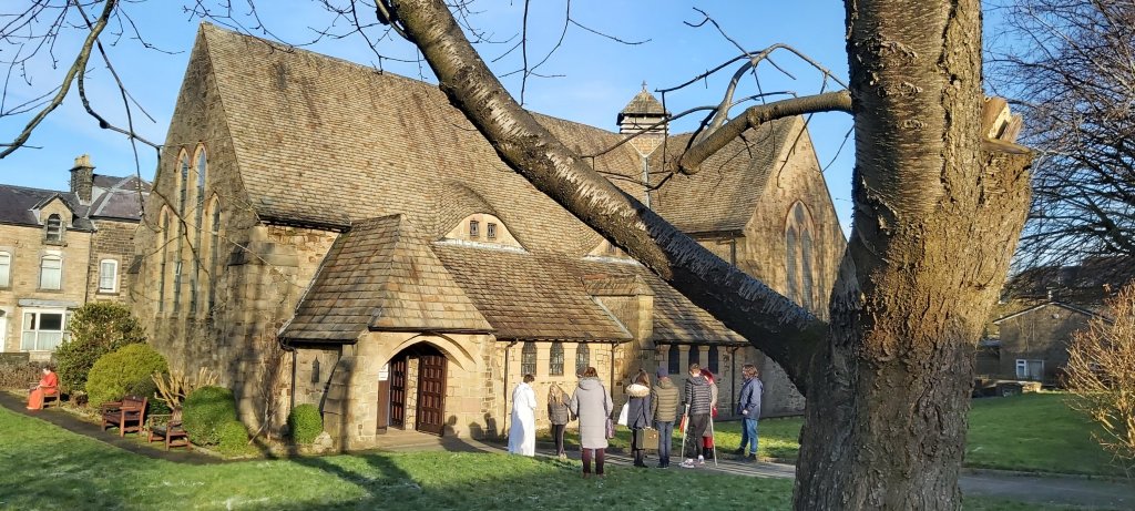 I chose not to attend the First Communion of Christmas last night, and thus went to bed at an almost respectable hour, and was up in good time for church on Christmas Morning. The sky was as you see it in the picture, and the air as still as a lamp-post. The downside of such wintertime tranquillity, a sharp frost! Before making breakfast, I decided to check at least one of my cars would start. The red car was frozen up and the doors wouldn’t open. The silver car’s battery had drained. Instead of a breakfast of porridge and banana, I hastily put a marmalade butty together, consumed the same and legged it to St. Mary’s, arriving ten minutes’ late. After the Covid formalities were completed, I was shown to my seat and for a third time (or is it fourth time?) the Order of Service was of little use…I had left my glasses at home….yes, again!! I was intrigued with the sermon highlighting in unfamiliarly graphic detail, just how unglamorous it was to be a shepherd at the time of Christ’s birth. The young curate spoke extremely well. The Christmas carols were set to modern melodies, and I still can’t get my head around “While Shepherds Watched….” to the tune of On Ilkley Moor Baht’at! But, it was a good service and I am glad that I didn’t get there too late!