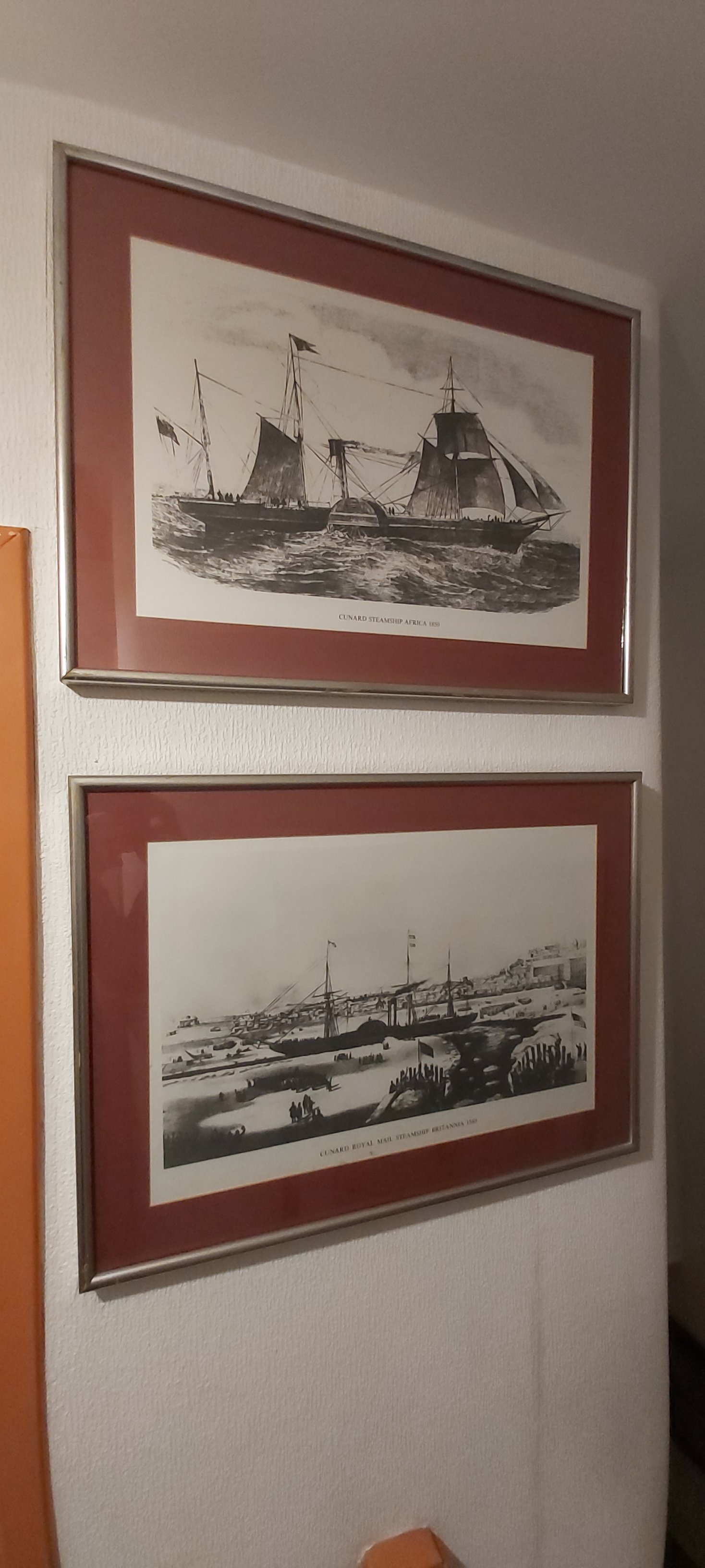Today, a wet miserable snow has returned and from inside, it all looks quite pleasant. I made a rare visit into the roof area to retrieve four sketches of 19th Century Cunard ships which the person from whom I bought them stated they had been retrieved from the original Queen Elizabeth after it had been withdrawn from service in 1968. I doubt whether anybody who may remember them on board is still alive, except possibly Miss Ryan, who enjoyed a glittering career in the ocean liner travel business. I have enjoyed her company once or twice on Cunard voyages when she was guest lecturer.