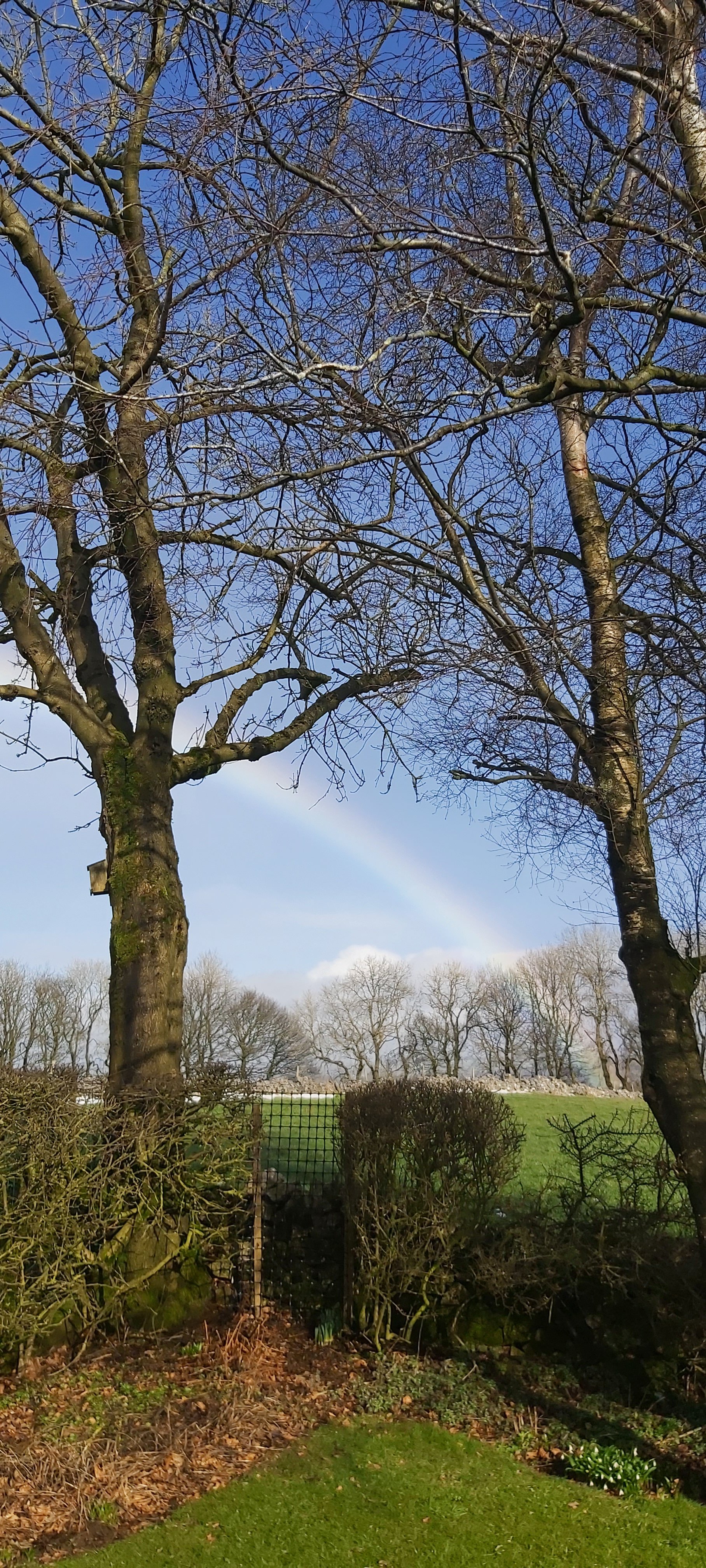 As you can see from the pictures, I enjoyed my first walk in a couple of weeks. A glorious rainbow crowned the end of Trenchard Drive. I continued from there to the post box; National Savings and Investments require yet another signature to process my now “mandatory” dealing on-line. The one I sent previously did not match their records – you couldn’t make it up!