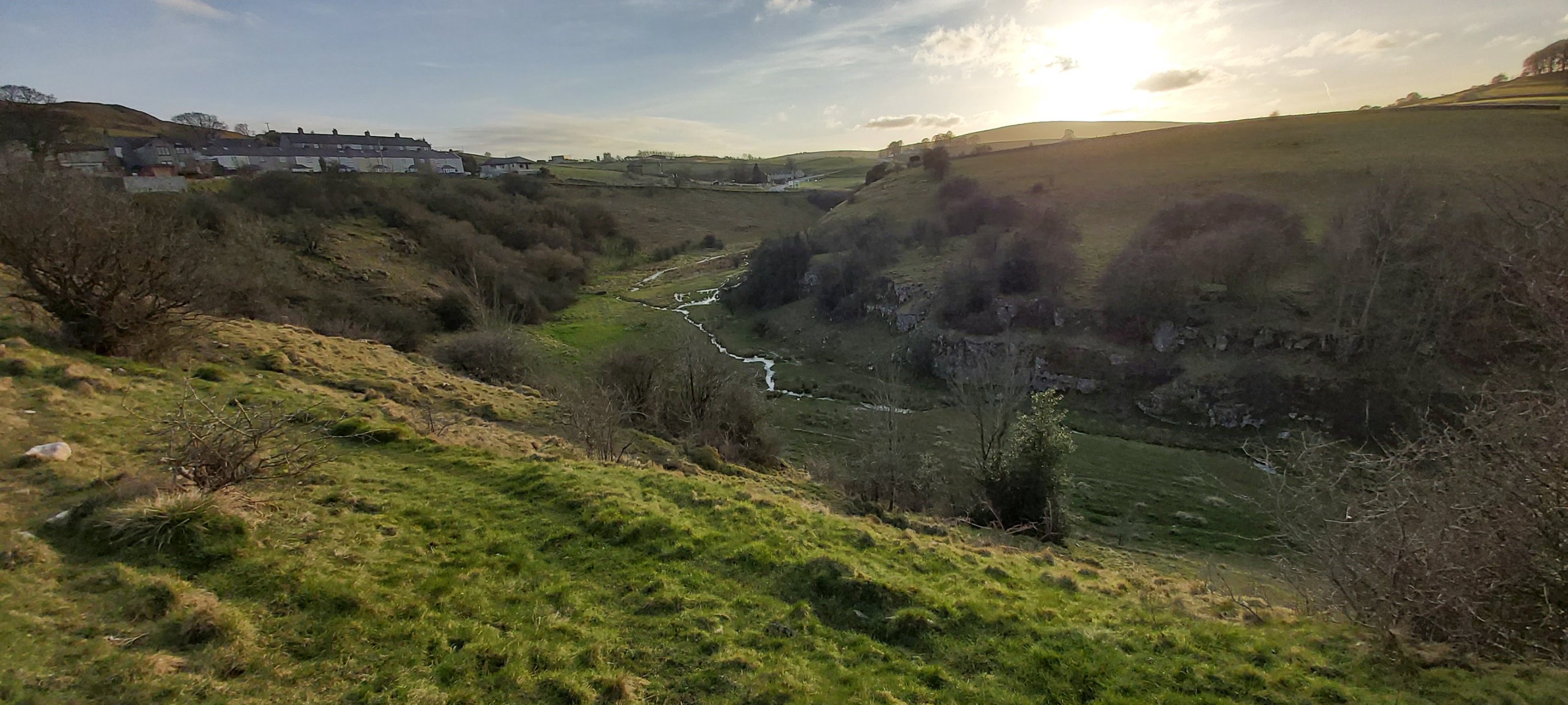 My support bubble companion came over for a respectable (‘though I say it myself) spaghetti bolognese. The still agreeable weather of recent days prompted a further exploration of the local countryside. Driving is still discouraged, but fine countryside is almost on our doorstep. The walk took us along Grin Low Road, down a steep hill and on to a footpath, leading eventually to a local long-established riding school, then, returning home via Fernydale, eventually rejoining Harpur Hill Road opposite St. James’ Church. When we set off, although dry and cool with grey skies, all of a sudden, glorious sunshine and almost clear blue skies with a hint of the warmth to come, added greatly to the pleasures of this leisurely stroll.