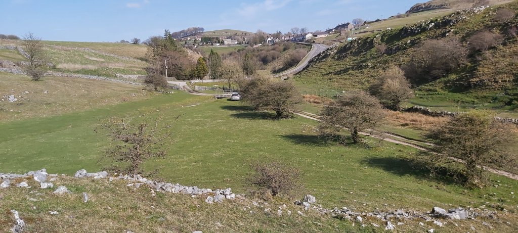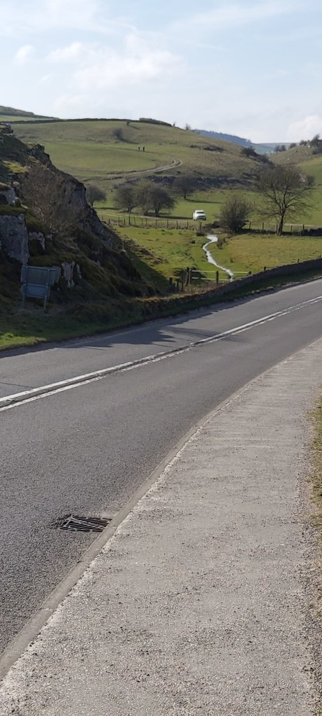 Yesterday afternoon, after an excellent vegetarian lunch over the road, Roger and I availed ourselves of the final nice day before the eventual return of a miserable cold snap. In fact, although there was a strong wind from the north, it was not bitingly cold. We set off from home, along Grinlow Road, and then across fields almost to the site of a Victorian reservoir which was never successful owing to its being located in an area of porous limestone. We continued through noteworthy countryside and forests towards the track bed of the much talked about Cromford and High Peak Railway. This must have been an incredibly scenic railway during its brief existence over the original route.