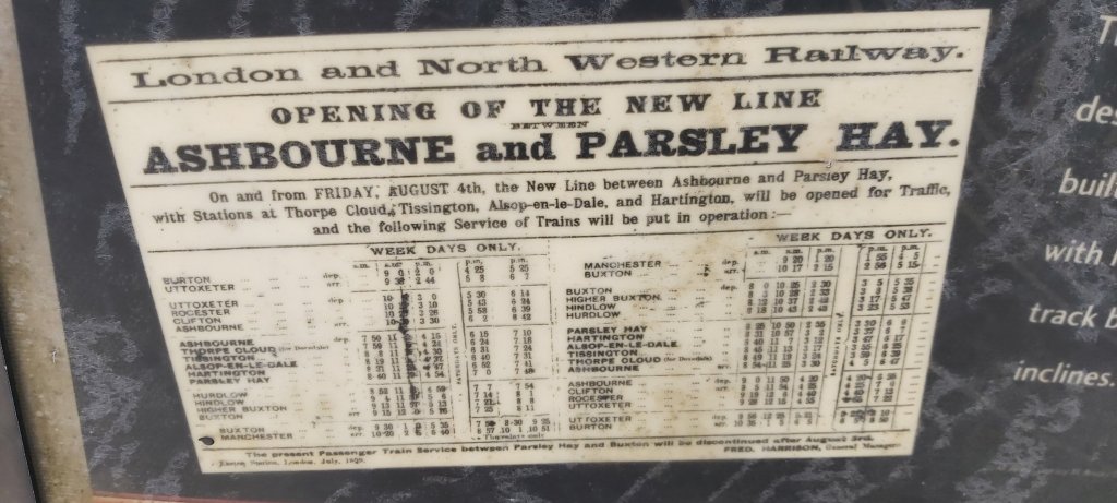 Time for another break. The Tissington and High Peak Trails are busy today. It seems that the world, his wife and kids all had the same idea as me. Throughout, I have been passed by numerous cyclists, not surprising as this is a cycle trail. The long since deceased directors of the London and North Western Railway must be turning in their graves at the enormous number of people walking and cycling along what was once their business, which with three inconveniently timed passenger trains each way between Buxton and Ashbourne was probably never going to be a gold mine. However, as a freight route, I understand that the amount of traffic was prolific, both minerals and agricultural. The small amount of original publicity material in my collection does suggest the high hopes the L.N.W.R. had for the railway prior to its introduction.