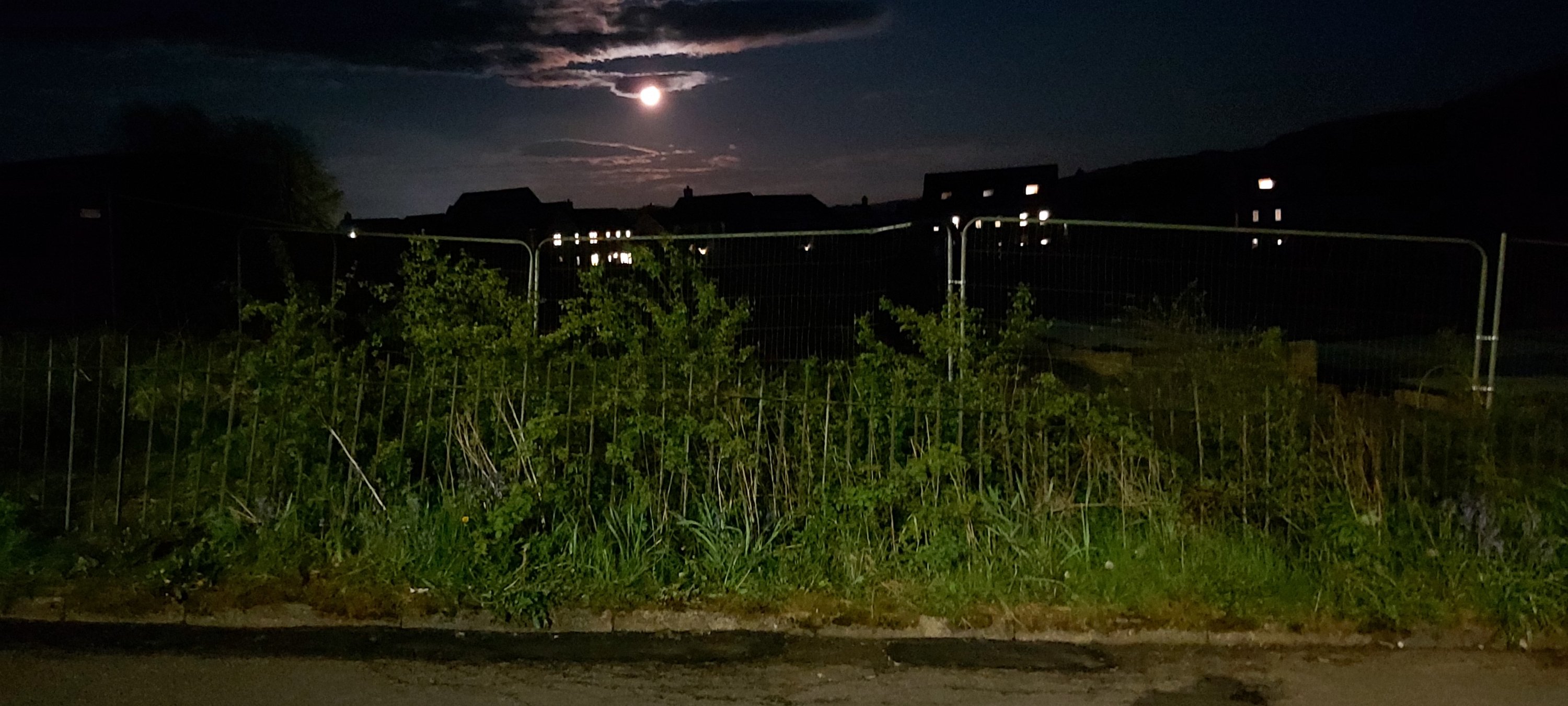 I had added up my daily steps total, recorded on my ‘phone each day since May 1st. By the end of yesterday, the total had become 277,275. A “mega” walk today could well see me finish the “challenge”. The plan was to walk between Hurdlow and Parsley Hay in both directions, attend a dentist appointment later in the day, then, walk into Buxton in the evening, enjoy my first curry in over a year, visit a friend and then walk home. I calculated that I would have achieved just over the 300,000 steps target by the time I was back home. Just to make sure, I went on a further moonlight stroll to the end of Trenchard Drive, thus achieving a record (for me, that is) of 24,374 steps, approximately 8.55 miles. I arrived home, rather pleased with myself….until, checking and then, double checking the daily totals, I found I actually wasn’t quite there yet. Darn!!! Never mind; good weather is forecast from now on. And I did get to see some wonderful moonlit skies. That in itself made the effort worthwhile. The whole day was splendid, apart from discovering that a broken tooth needed urgent attention!