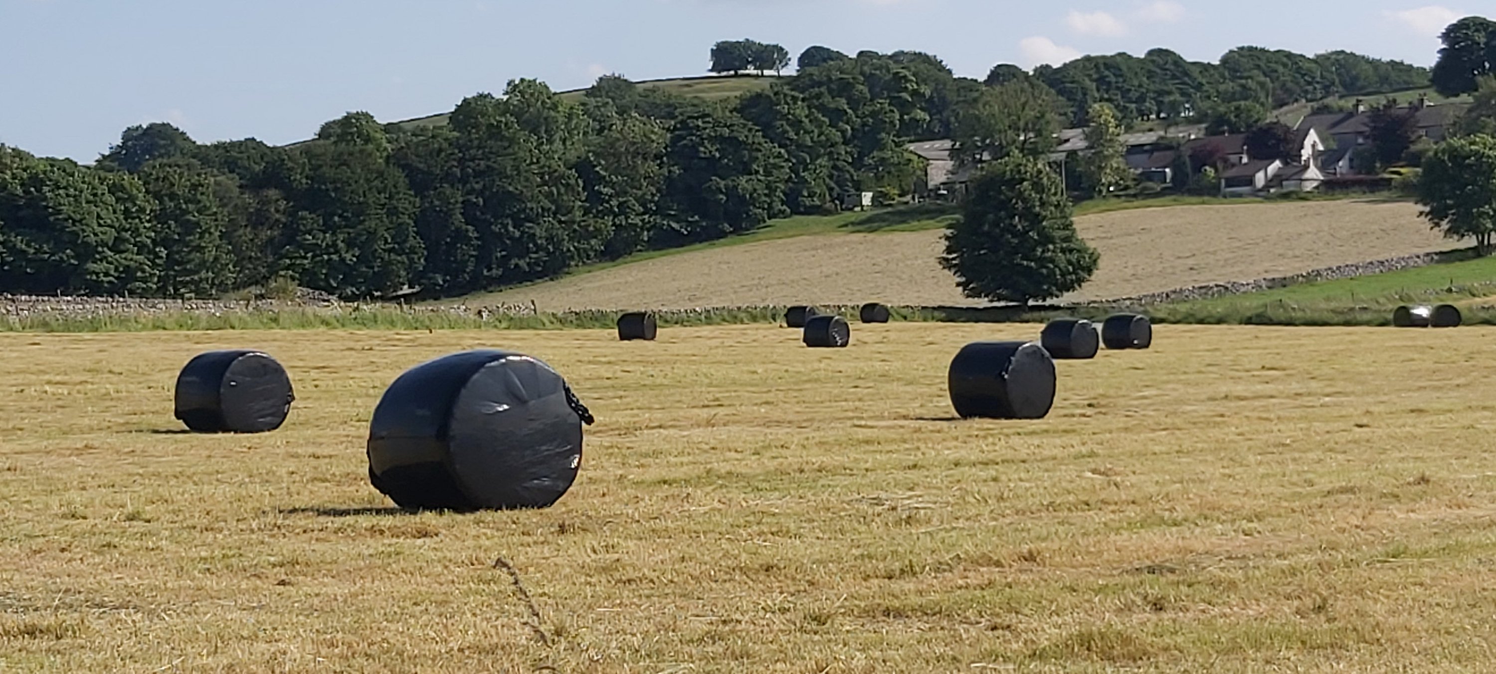 The Eucharist, yesterday, was set to the music of Mozart, again with minimal musicians and singers. However, this was so well performed that more players and a larger choir was not necessarily needed. Michael Williams continues, despite lockdowns and pandemic related restrictions, to produce wonderful and worthwhile music. As usual, I enjoyed coffee with a church colleague as is the case most weeks. Lunch with Roger normally follows, and then an afternoon exploration of the never-endingly gorgeous local countryside. Despite temperatures in the high twenties, I did feel like walking after lunch, having already walked to Church. Once again, Roger had located an almost invisible path to explore, through neck-high undergrowth! I was prompted to photograph bales of hay in an adjacent field. This old fashioned method of baling hay is rarely seen these days, as now, single use plastic is used to gather the hay in large cylindrical bundles.