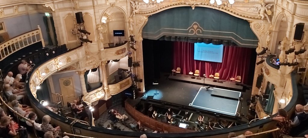 In the evening, I had a ticket for Handel’s Acis and Galatea at the Buxton Festival. My seat was in the Upper Gallery (the gods) and was remarkably good. Despite social distancing, I was seated behind a couple, he being the size I was once was and necessitating my having to strain to obtain the clear view I would normally have enjoyed. Although nothing was said, I suspect he was equally irritated by how close I was seated behind. In the second half, I moved further along my row to a seat, which although offered that uninterrupted view, was in need of repair, and I had to remain remarkably still! That actually was no problem. However, it was almost impossible to focus on the now distant side titles, which changed and faded far too frequently to be able to follow.