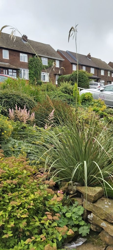 I have absolutely no recollection of planting, or ask to be planted, the two magnificent pampas grass “bushes” illustrated. Apparently, in certain parts, they can send an “inappropriate signal!” I don’t remember them last year; but there is at least one other garden on our lane, with a superb display. And there have been a lot of strong winds recently!